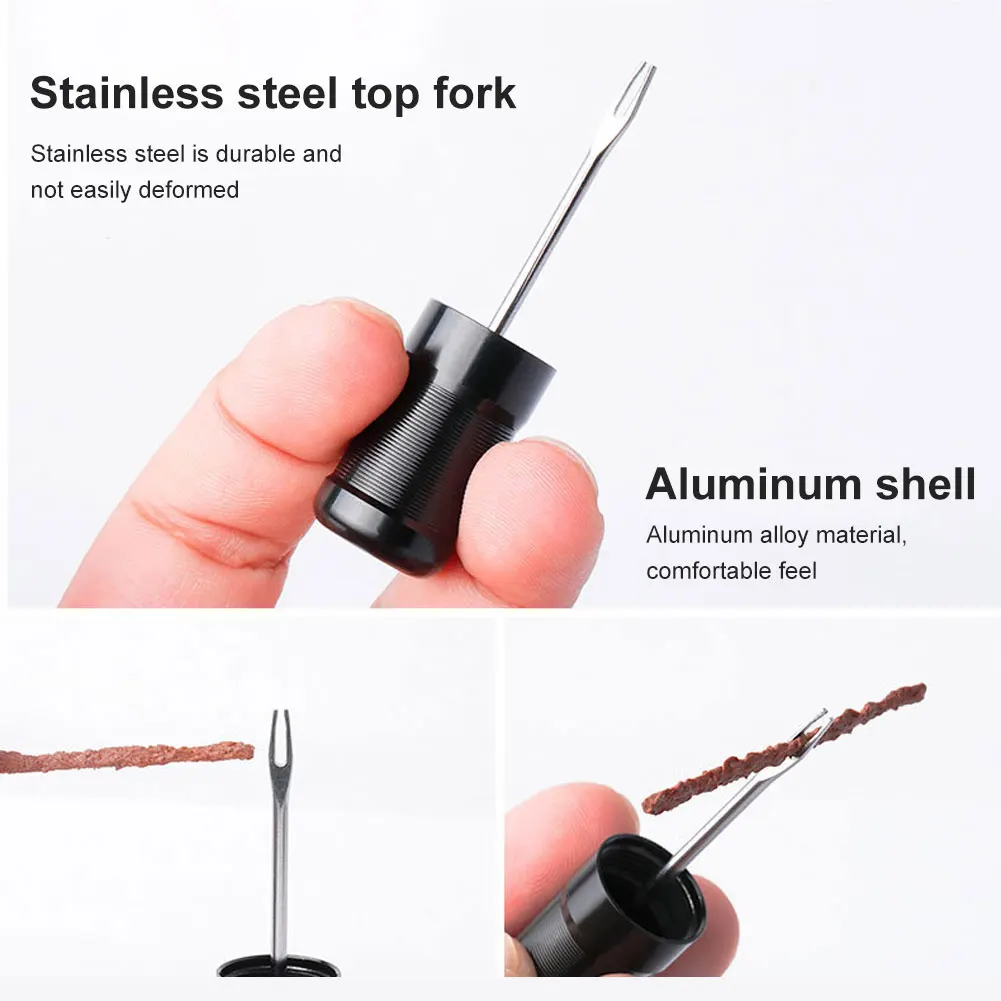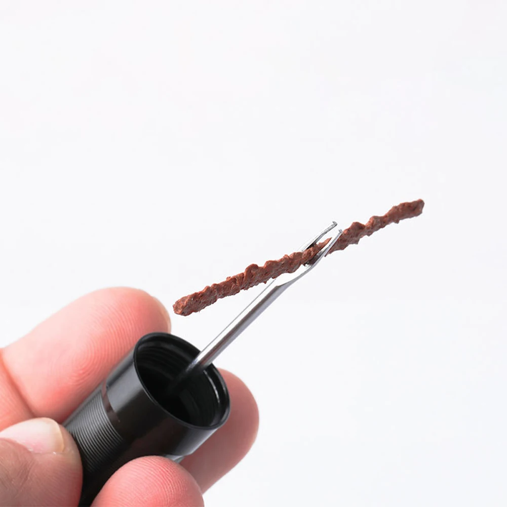Этот инструмент предназначен только для бескамерных велосипедов. Для ремонта проколов он может вставлять 2 полоски за раз. Пожалуйста, замените другой метод, если 2 полосы не достаточно велики, чтобы подключить отверстие.
