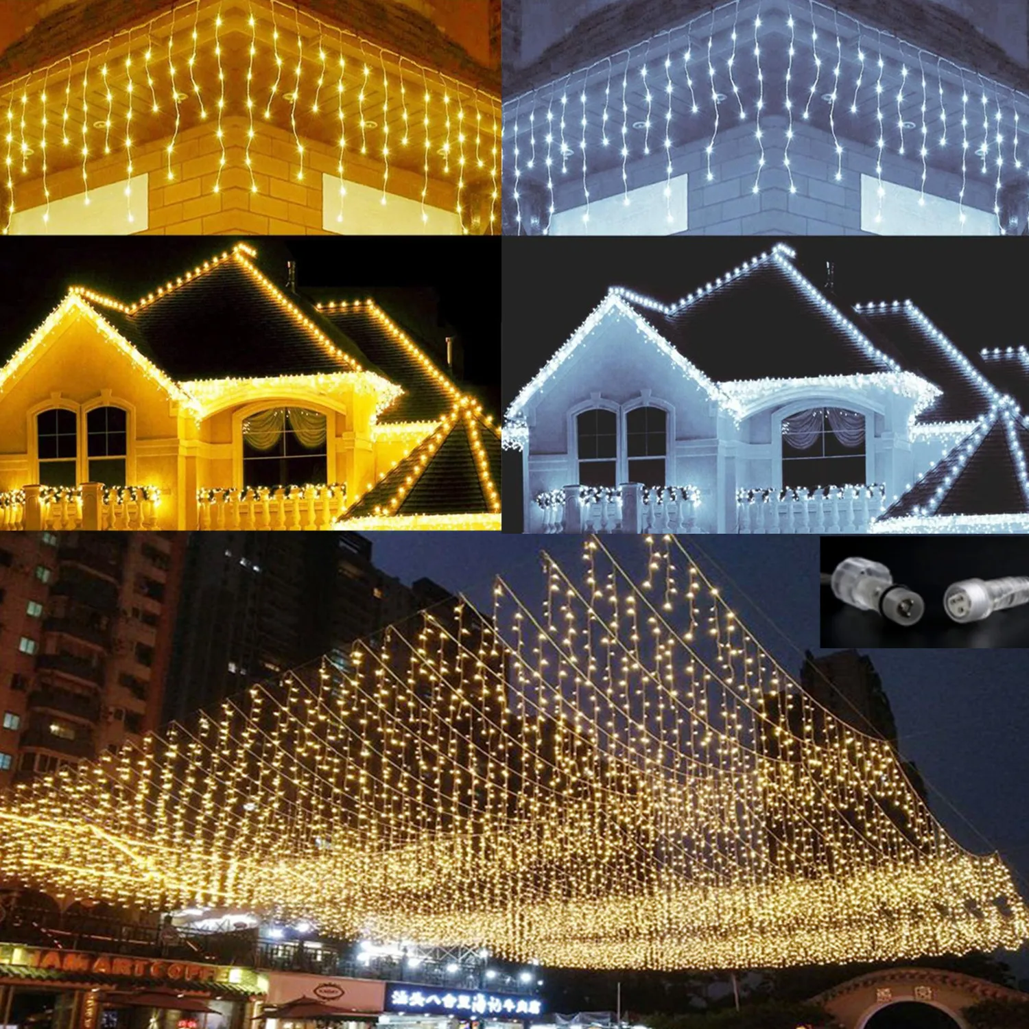 Рождественские украшения для дома, уличная светодиодная гирлянда-занавес в виде сосулек, уличная Гирлянда для дома, зима 220 В, 5 м, свисающая на 0,5-0,7 м