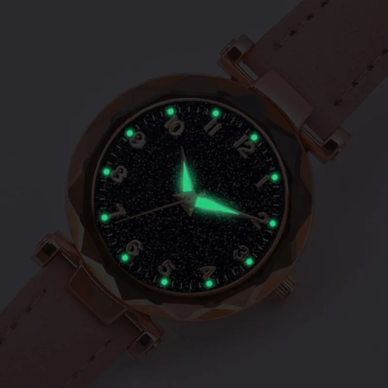 Звездное небо яркие женские часы корейские розовое золото кварцевые часы женские часы модные часы с кожаным ремешком