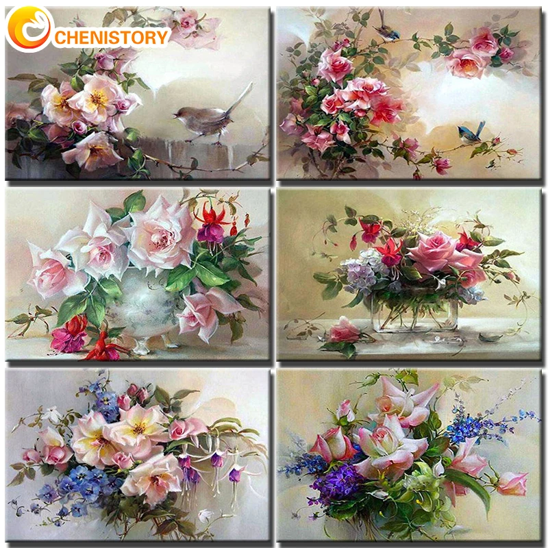 GATYZTORY DIY картины по номерам розовый цветочные наборы домашний ...