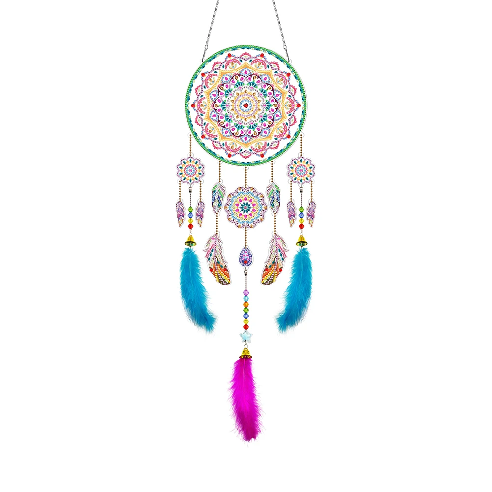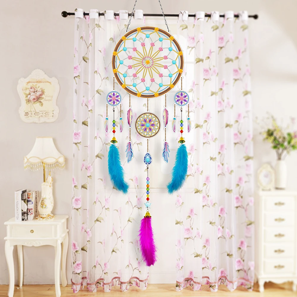 DIY Алмазная картина Ловец снов Набор колокольчиков мозаика перо бисера цепь висит для дома садовые украшения