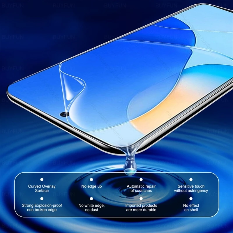* 999D край дуги: на ощупь гладкий, ультра тонкий. HD прозрачный* 7,5 H твердость: даже sharp предметы, такие как ножи и ключи не поцарапают фильм, ультрапрочный.* Отличный дисплей окна: HD 99% оптическая пропускаемость, непревзойденная Сенсорная чувствительность.* Олеофобное покрытие: анти-отпечатков пальцев, анти-масло, анти-кислота и анти-щелочи и другие загрязнители.* Простая установка: мы приложили видео, показывающее, как установить гидрогелевую пленку.* Взрывозащищенный Ударопрочный: даже если он сломан, он не будет брызгать, гораздо безопаснее, чем другие стеклянные изделия.