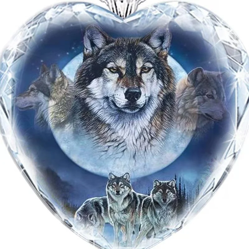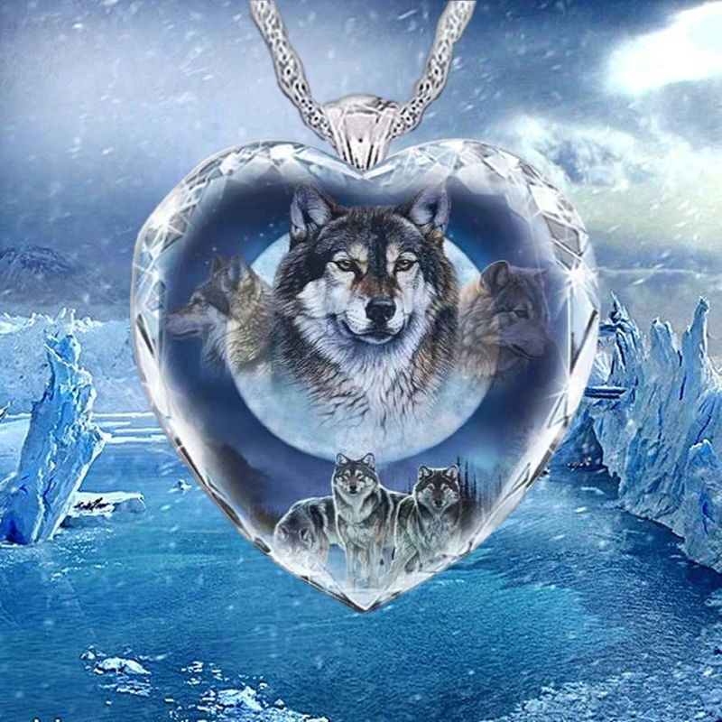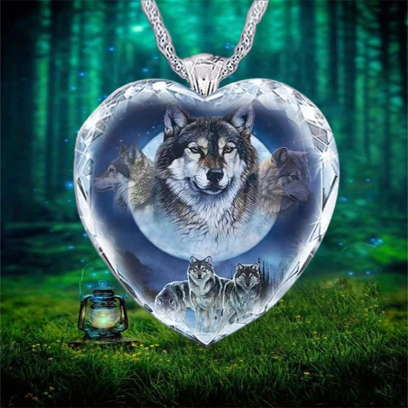Ожерелье женское, с кулоном в форме сердца, серого волка, с кристал...