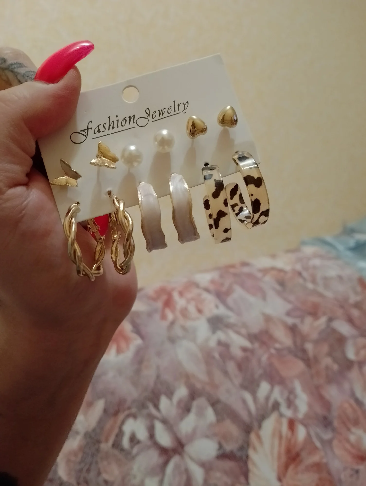 Набор винтажных серег с жемчугом, бабочкой, леопардовым принтом, дл...