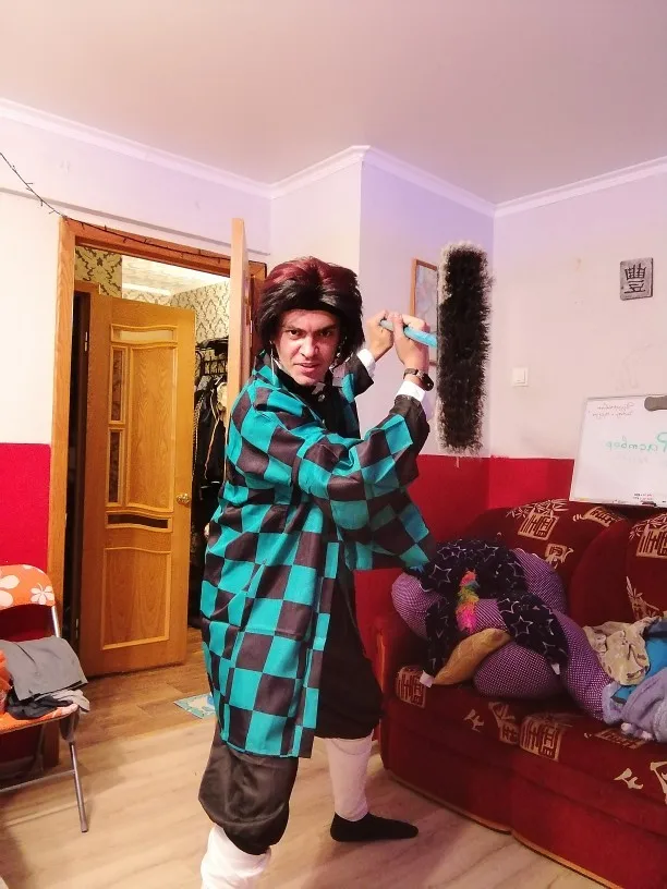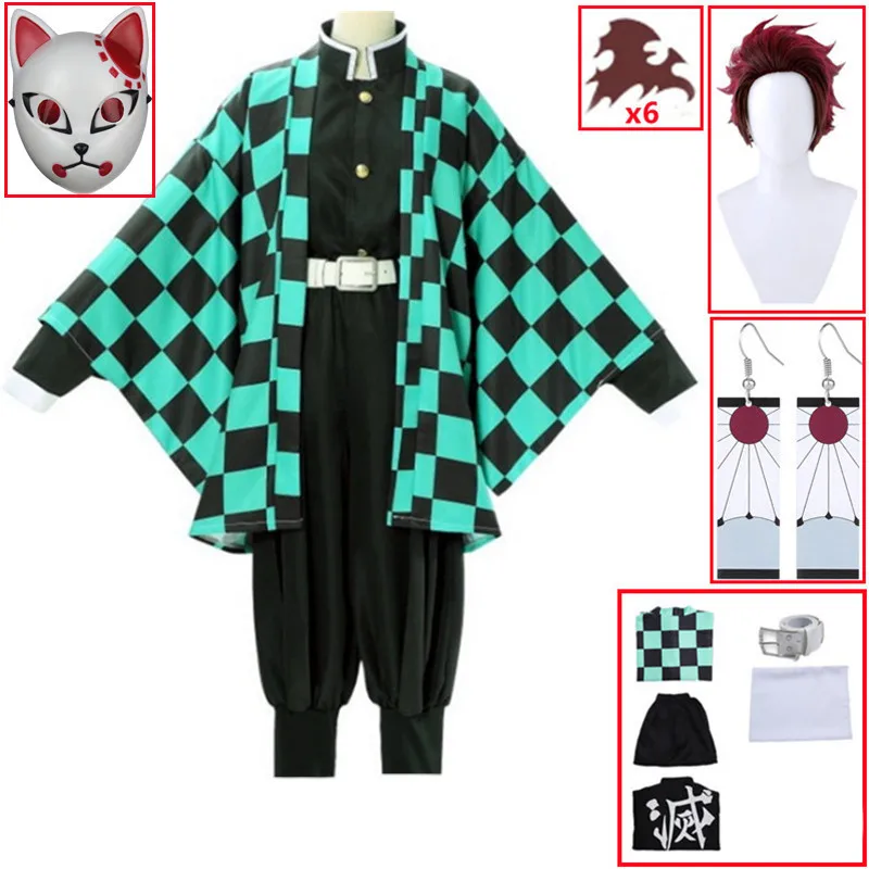 Костюм-кимоно для косплея из аниме рассекающий демонов, Карнавальная одежда для Хэллоуина для взрослых и детей