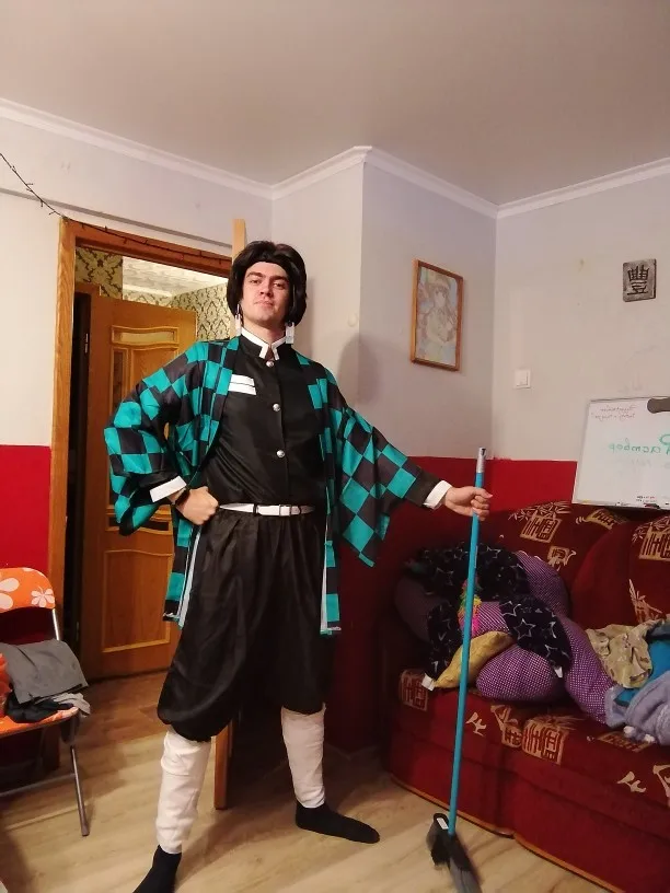 довольно быстро доставили.комплект полный и выглядит хорошо, ниточки подрезать и отлично. причесон не наводил и шрам не рисовал, это буду делать на хелуин, но парик мне в полне нравится. Мой рост 185 и я заказал XL (успел поменять в последний момент), по плечам хорошо, но в руках немного коротко, но это не критично, штаны снизу тоже немного коротковат, но так как лодышки отворачиваются тканью это тоже пофиг, так что всё хорошо. ремень на сгибах немного помятый, думаю он выдержит только однодневные выходы, не не ежедневные, хлипковат, но этого тоже хватит. докупил отдельно клипсы и зонт в виде меча (ещё в пути, поэтому я со шваброй). в остальном доволен и советую продавца, спасибо большое за товар!