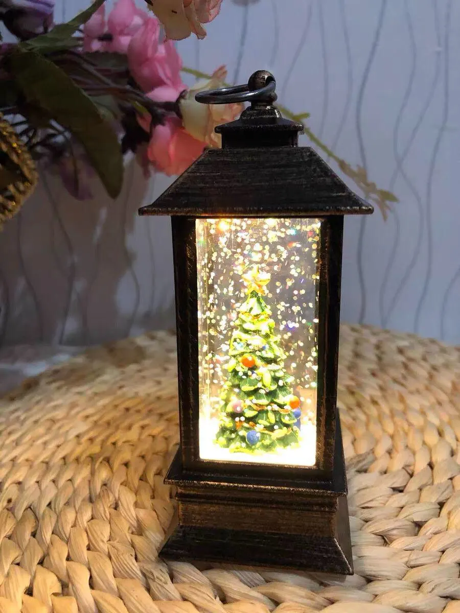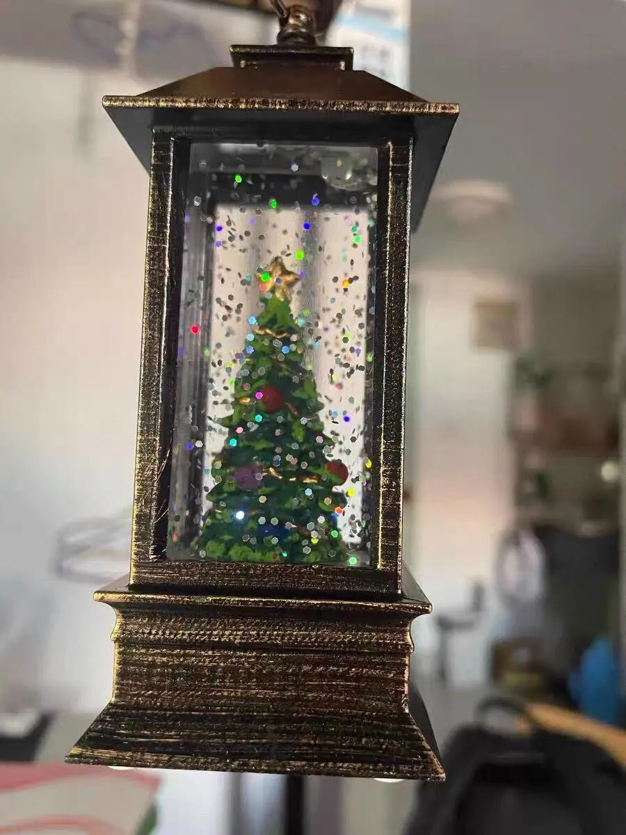 Подвесной Рождественский фонарь с мерцающими светодиодный фонариками, Ночной светильник, фонарь, украшение с блестками, имитация снежного глобуса, фонарь