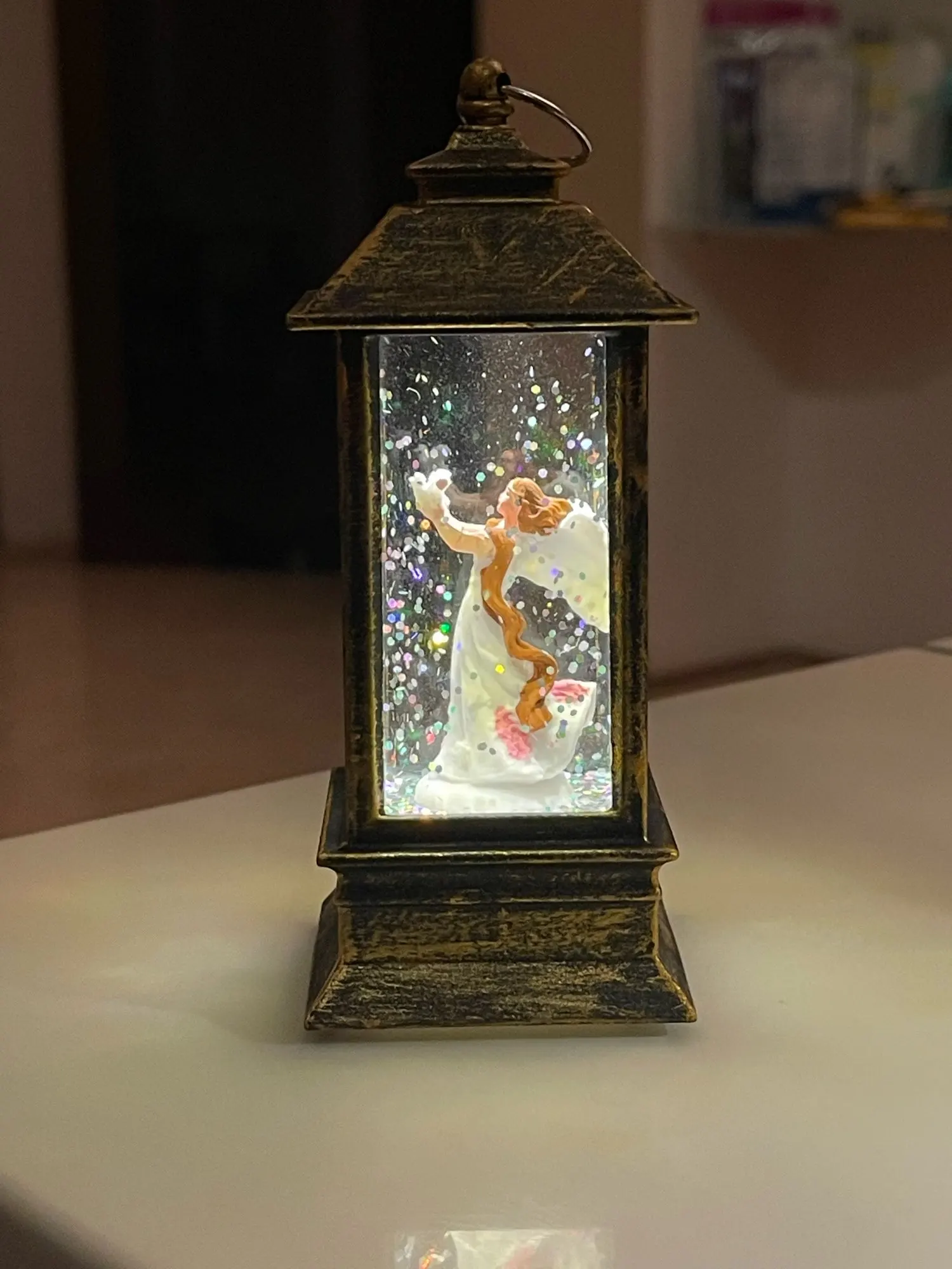 Я принес это своему сыну. Он любил это. Она не очень большая, поэтому при желании можно было повесить ее как украшение. Свет прекрасен, а блестки плавно и красиво плавают. Это действительно волшебное дополнение к нашему Рождеству.