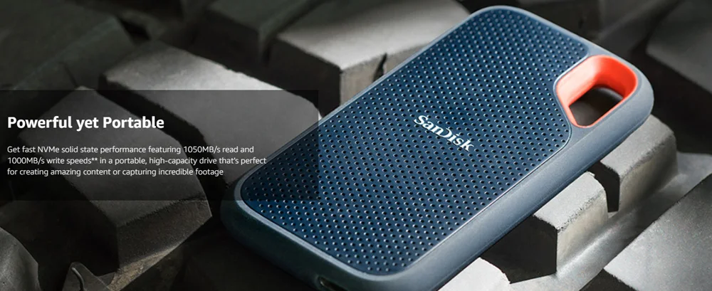 Прочный портативный SSD SanDisk Extreme обеспечивает высокоскоростное хранение для сохранения и редактирования фотографий и видео высокой четкости.