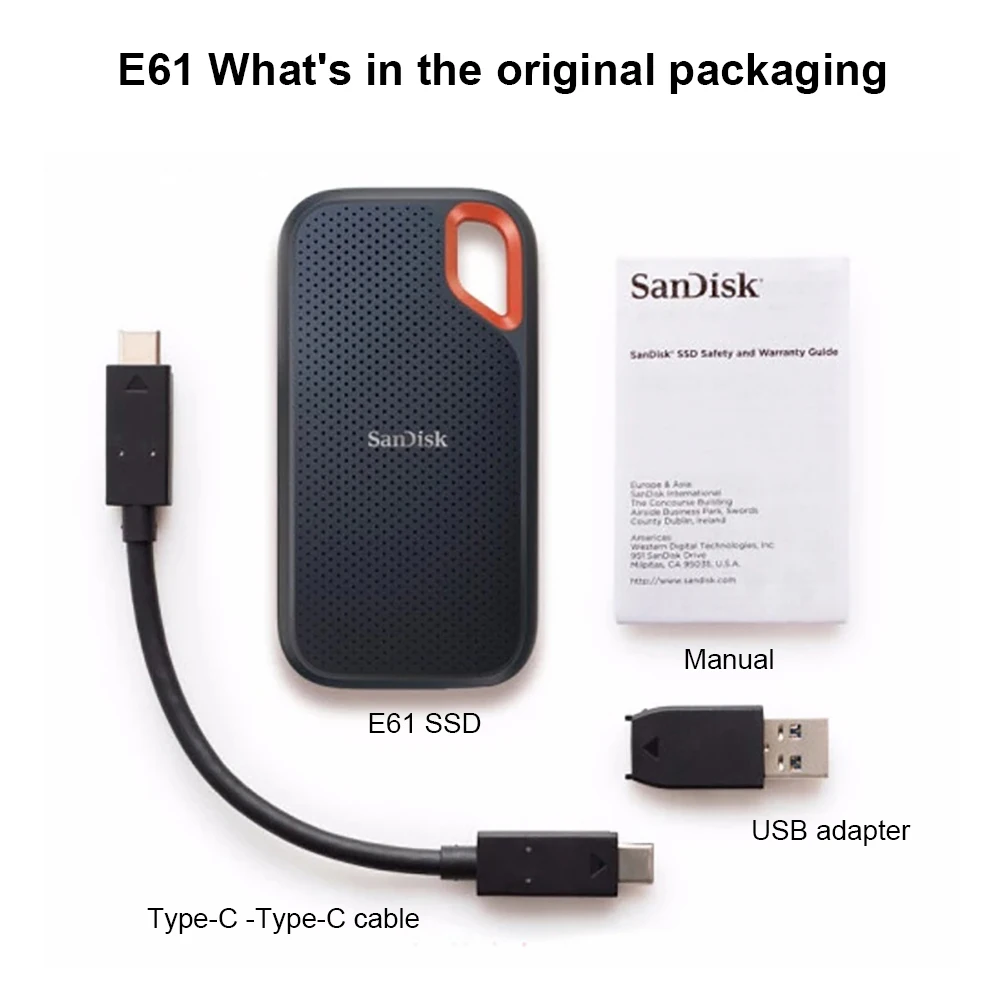 Внешний жесткий диск SanDisk E61 Extreme Portable SSD 500 Гб SDSSDE61 1 ТБ USB 3,1 Gen 2 Type-C 1050 мс для ноутбука, твердотельный диск
