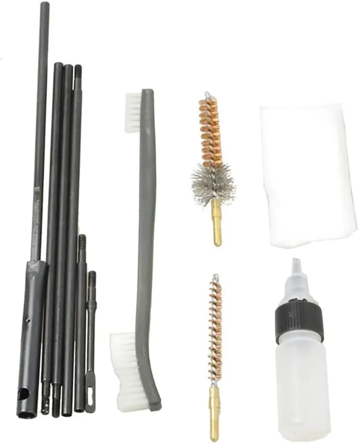 1 * .22 cal щетка из медной проволоки1 * .22 cal проволочная щетка1 * Двойная Концевая щетка6 * соединительный стержень1 * Нетканая ткань1 * бутылка для масла (без масла, пустая бутылка),1 * нейлоновая сумка.