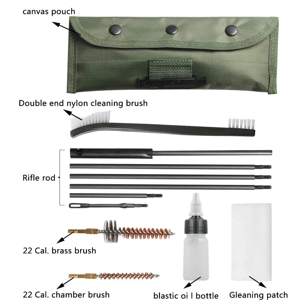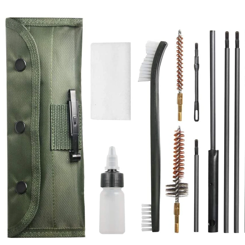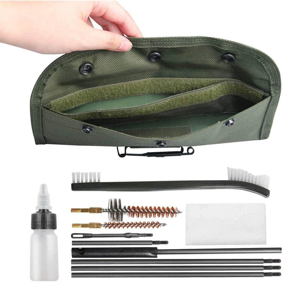 1. Чистящий набор-это простой и эффективный комплект для чистки пистолета. Этот комплект имеет небольшой размер и Легко чистит Ваш пистолет.2. Это набор для чистки винтовок 10 шт. для калибра 5,56 мм. 223 .22 и т. Д.3. Светильник легкий для переноски, подходит для кемпинга на открытом воздухе, пеших прогулок, охоты, путешествий и т. д.4. Очень подходит для обслуживания пистолета, легко чистить труднодоступные места.Просто возьмите эту зеленую сумку, она удовлетворит ваши различные потребности в чистке