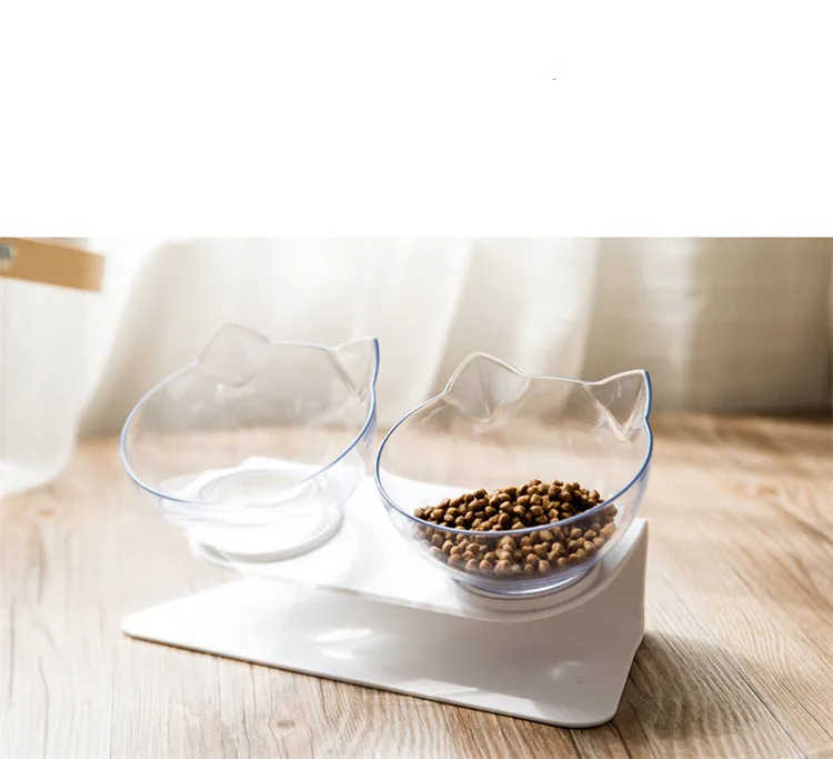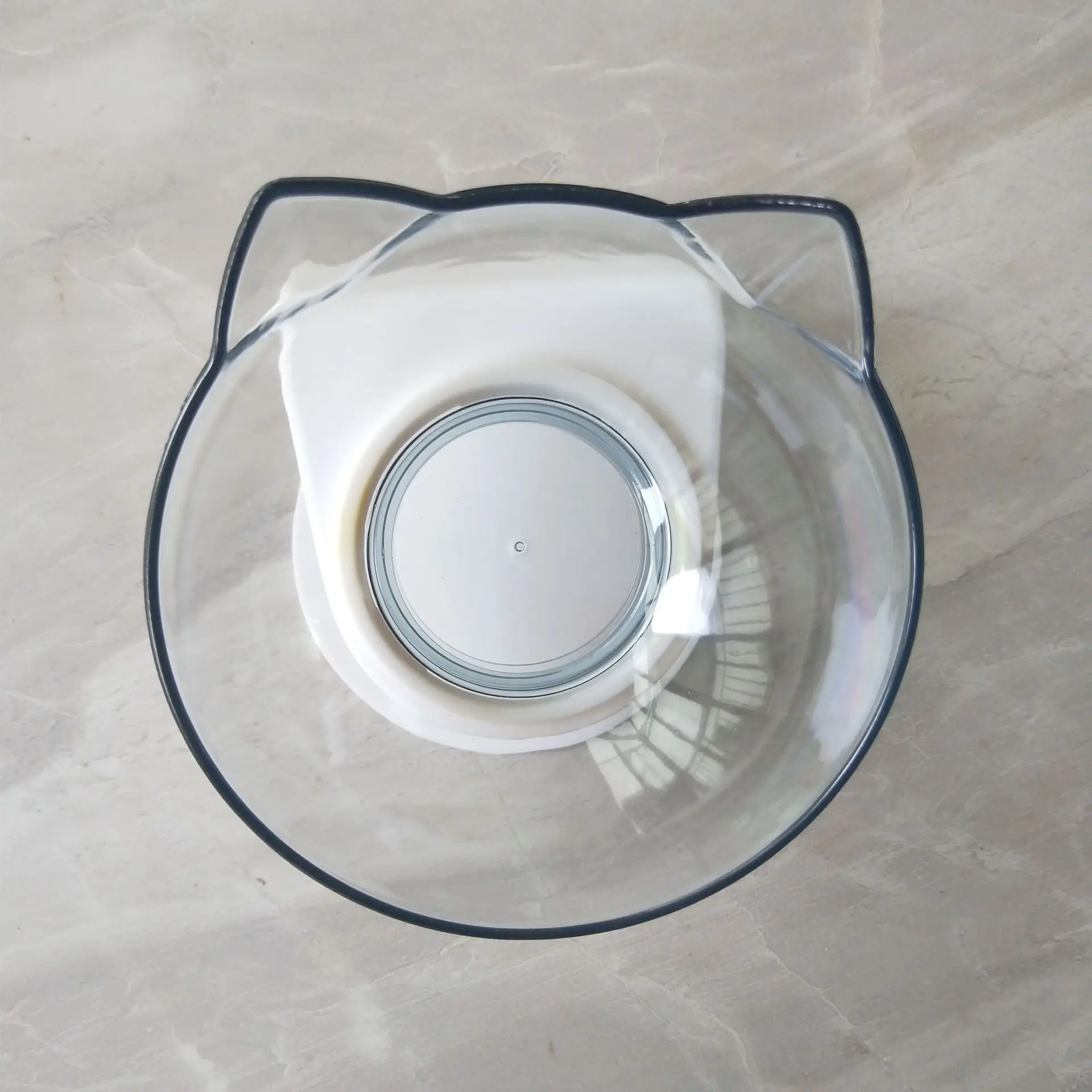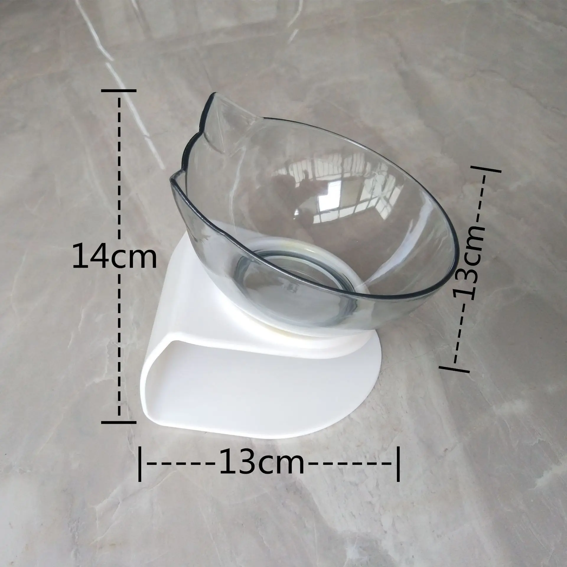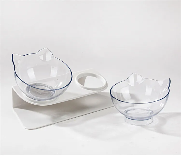 Прозрачная двойная миска для кошки из материала, противоскользящая миска для еды с защитой шейного отдела позвоночника для кошки