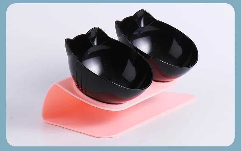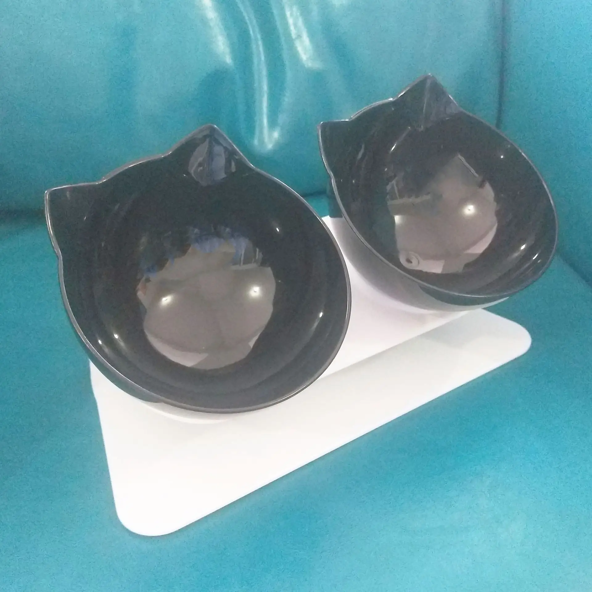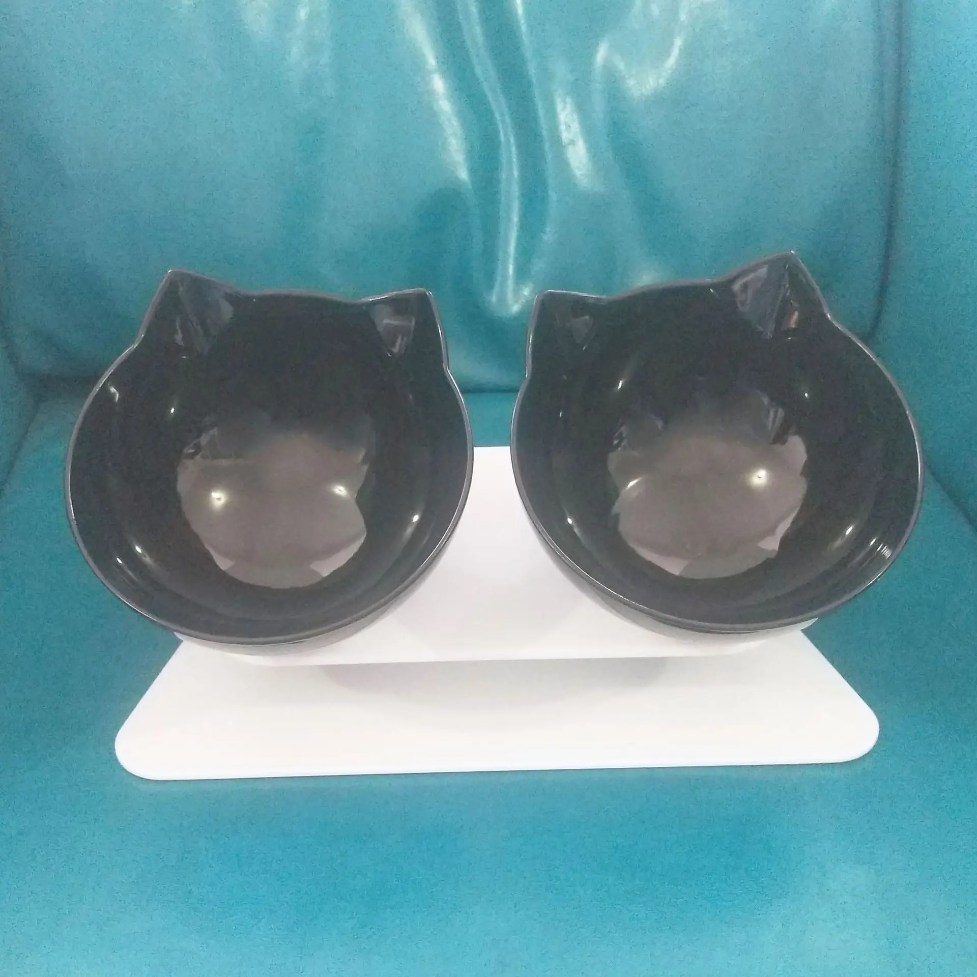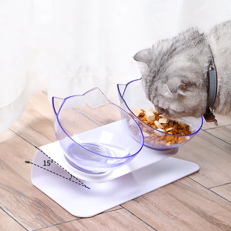 Прозрачная двойная миска для кошки из материала, противоскользящая миска для еды с защитой шейного отдела позвоночника для кошки