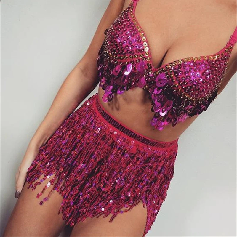 Женская юбка для танца живота hirigin, летняя мини-юбка с блестками и бахромой