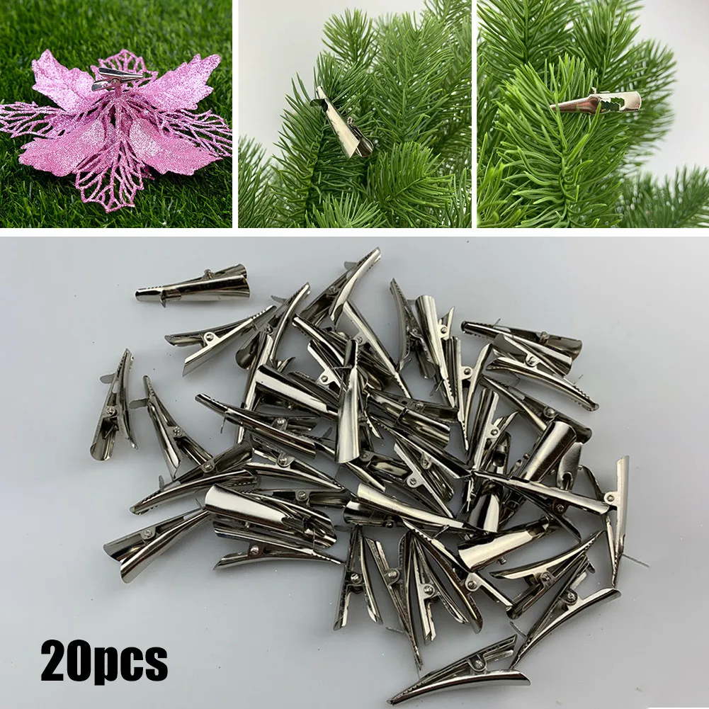 20 шт. зажим Рождественский зажим сплав мини зажим пуансета блестящий цветок зажим дерево подвесной инструмент для вечеринки Рождества 2022 Новый год Рождество