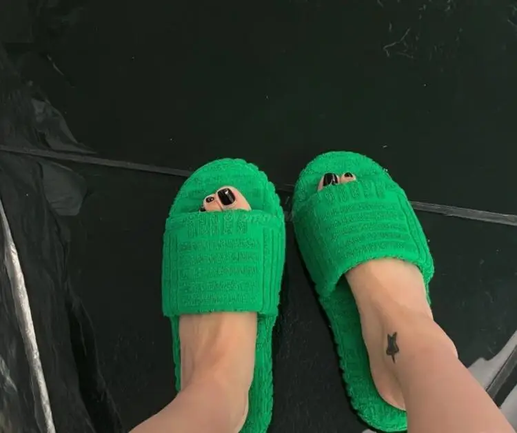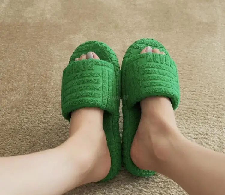 Зимние женские тапочки с открытым носком, хлопковая домашняя обувь ...