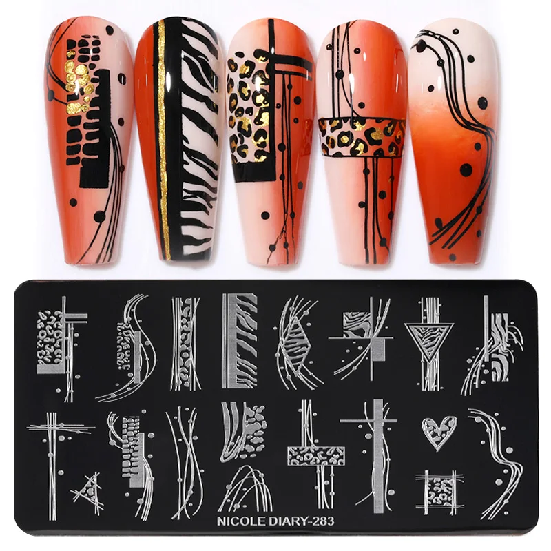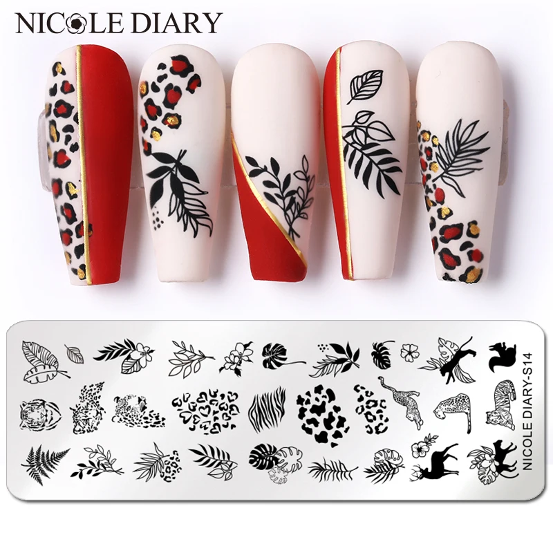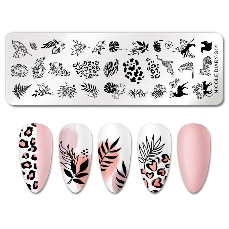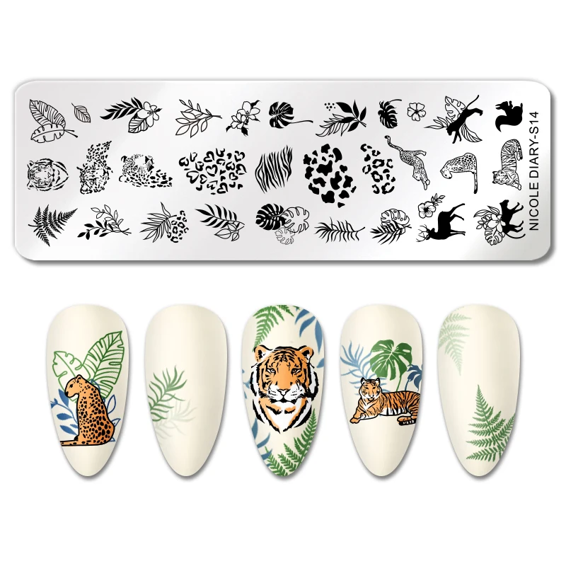 Трафареты NICOLE DIARY с изображением тигра, леопарда, снега, Рождества, штампы для ногтей, сердца, Листьев, шаблоны для печати
