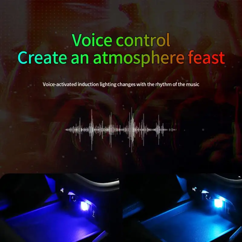 СВЕТОДИОДНЫЙ Автомобильный USB-светильник, миниатюсветильник декоративная лампа для создания атмосферы в салоне автомобиля, аварисветильник освещение, музыкальный ритм, цветсветильник