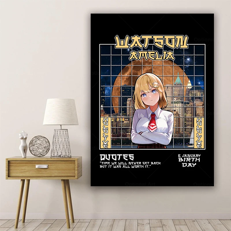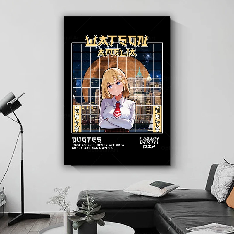 Ватсон Амелия Hololive, домашний декор, холст, картина на стену, украшение для гостиной, художественные плакаты, принты