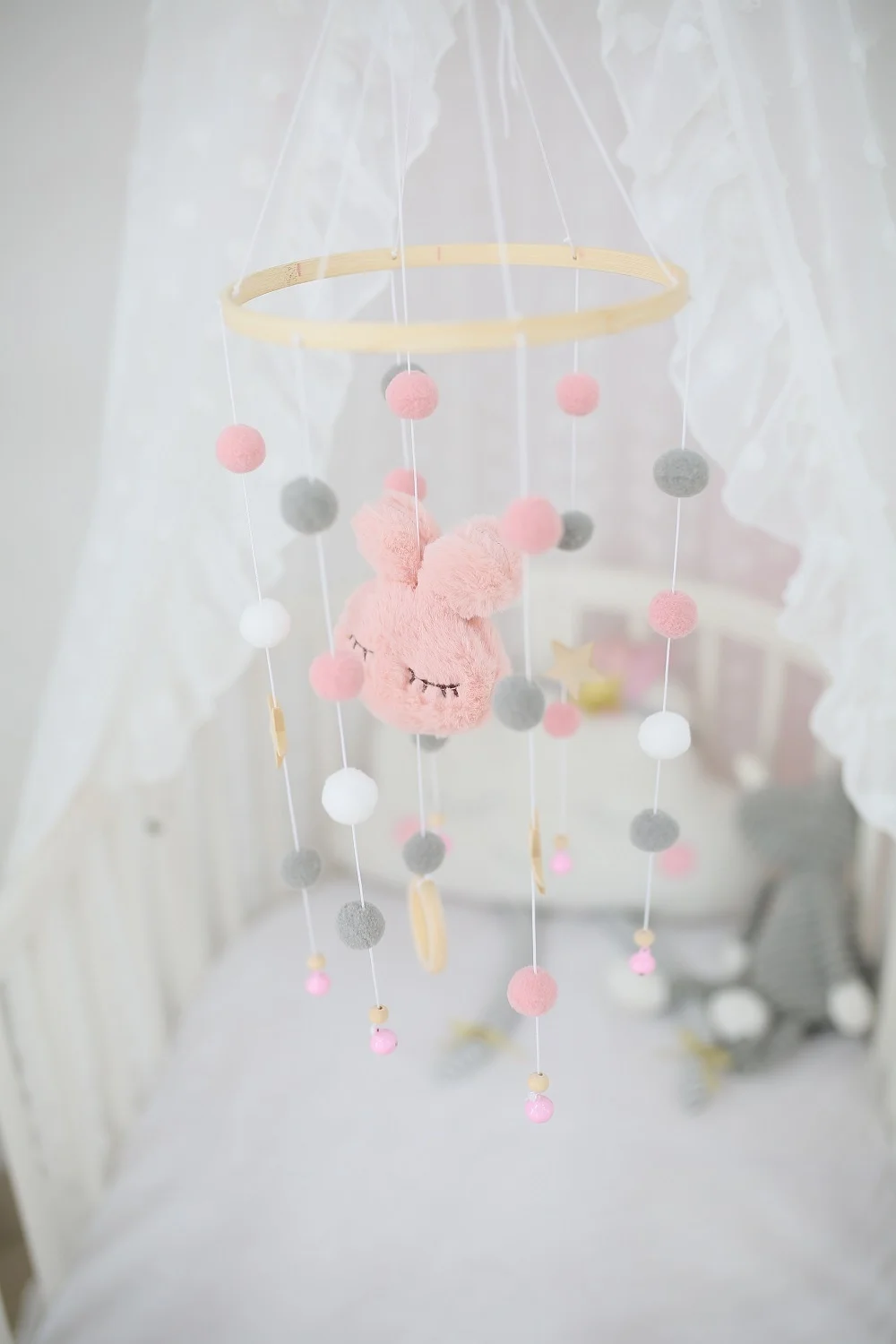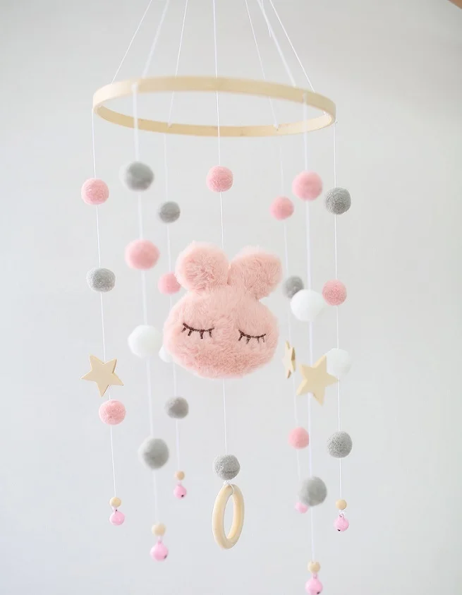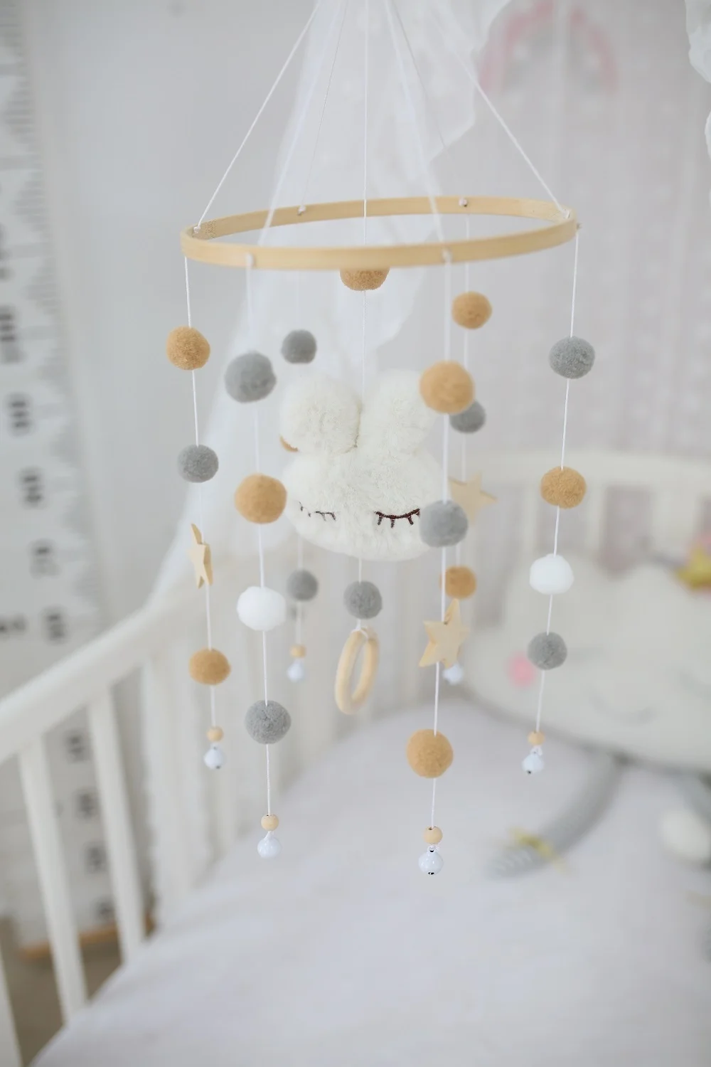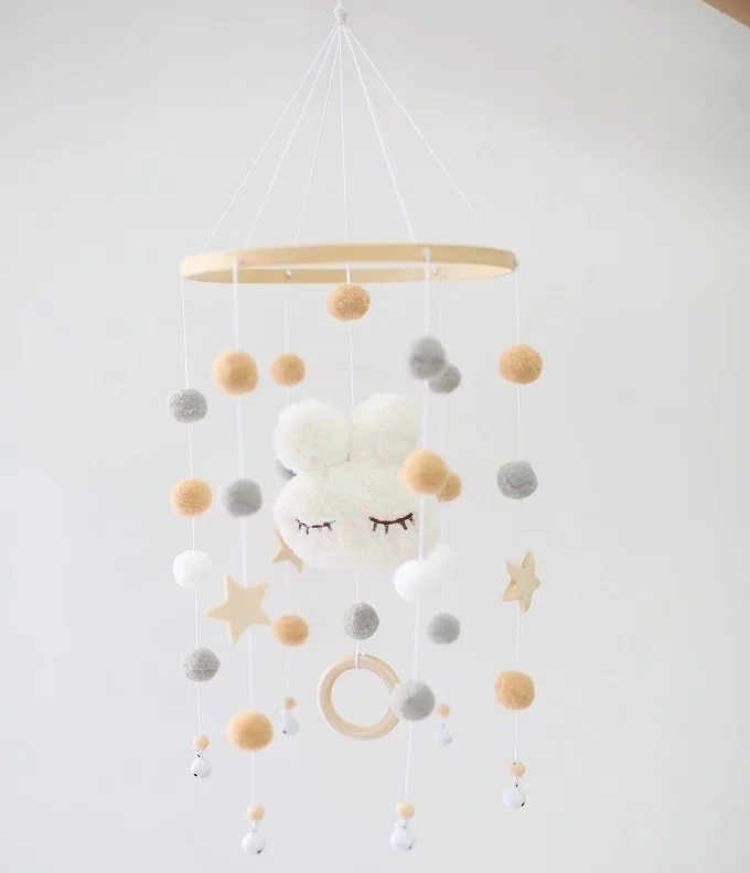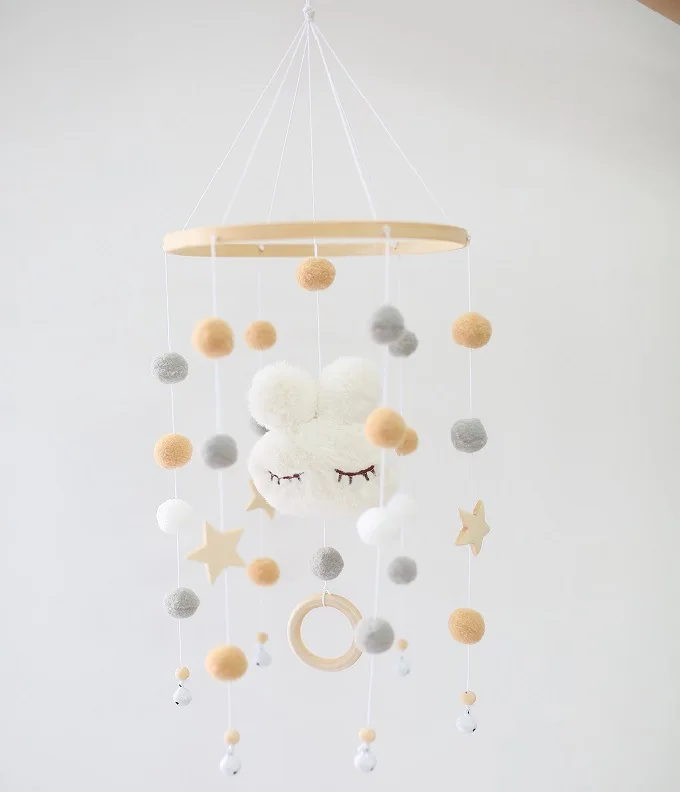 Скандинавский декор для детской комнаты, мобиль для детской кроватки, подвесной декор, Детский плюшевый кролик, облака, подвесной декор для комнаты, подарок для новорожденного