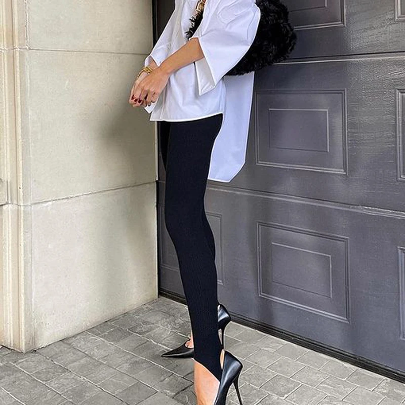 2022 черные трикотажные леггинсы в рубчик, женские хлопковые брюки ...
