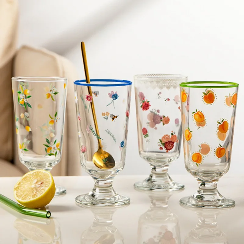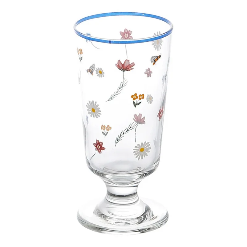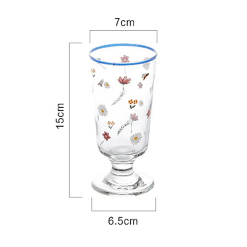 Стеклянная чашка в Корейском стиле ретро маленькая Маргаритка цветочный принт чашка для воды милая девушка Кубок для сока ручная работа сок лимон Пиво Вино чайная чашка