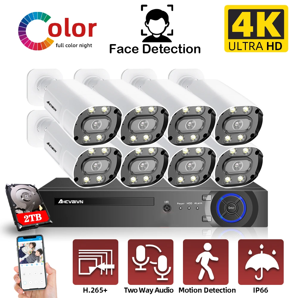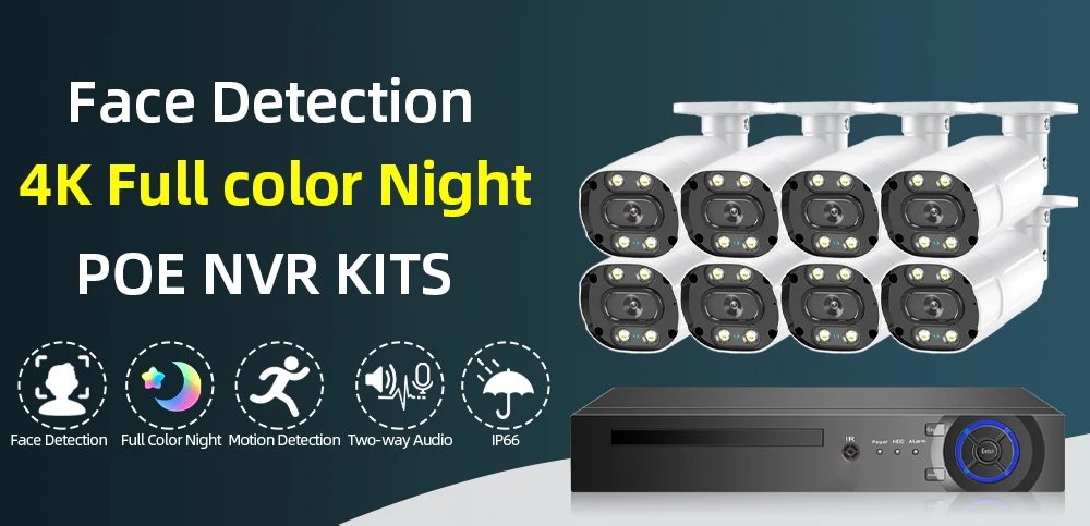 4K красочный комплект ночного видеонаблюдения 8mp распознавание лица Poe камера комплект уличная домашняя 8CH камера безопасности Cctv система Xmeye