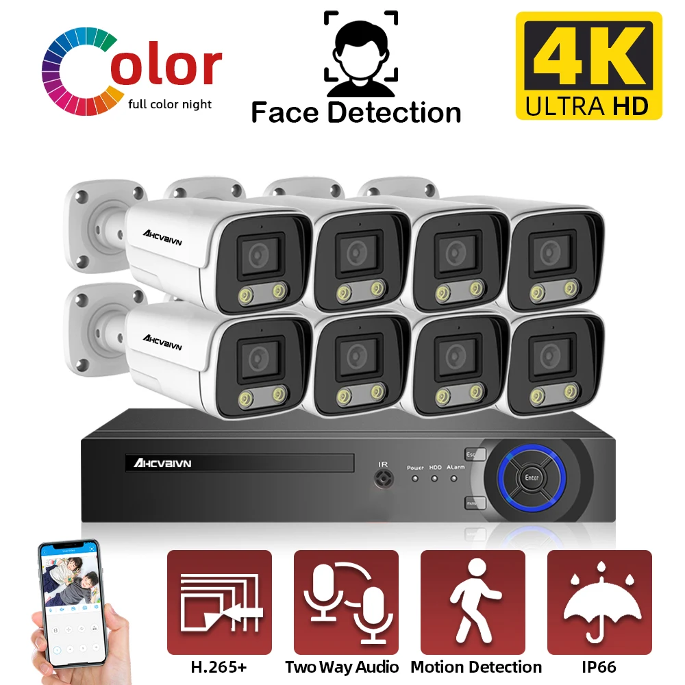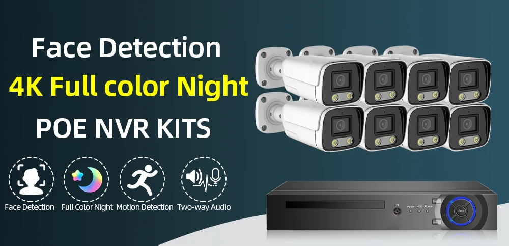4K 8CH POE распознавание лица NVR система 8MP IP камера распознавание лица наружная домашняя Двусторонняя аудиосвязь система видеонаблюдения набор 8 каналов