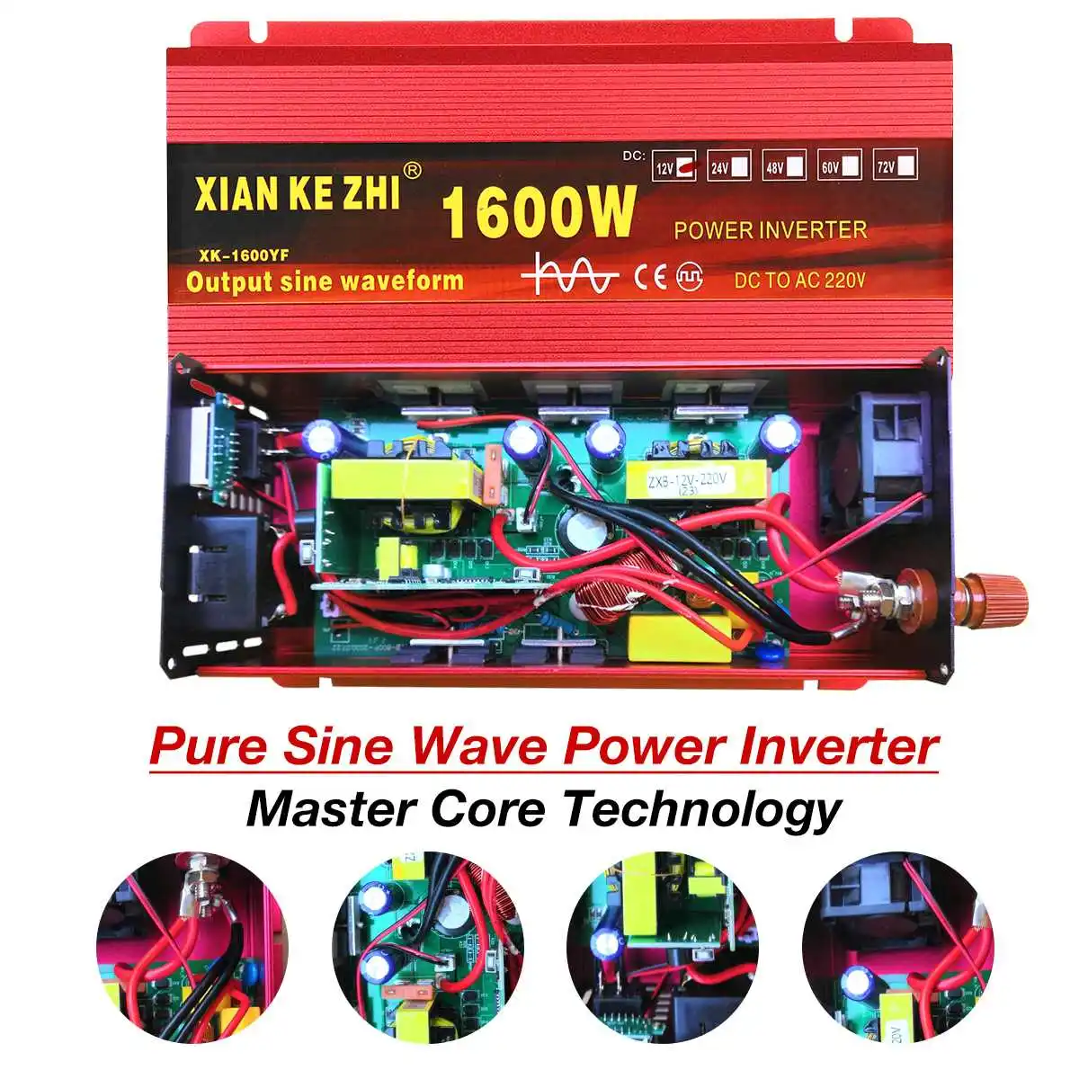 Инвертор немодулированного синусоидального сигнала 12 В24 В переменного тока 220 В 1600 Вт 2200 Вт 3000 Вт трансформатор напряжения Преобразователь мощности солнечный инвертор светодиодный дисплей