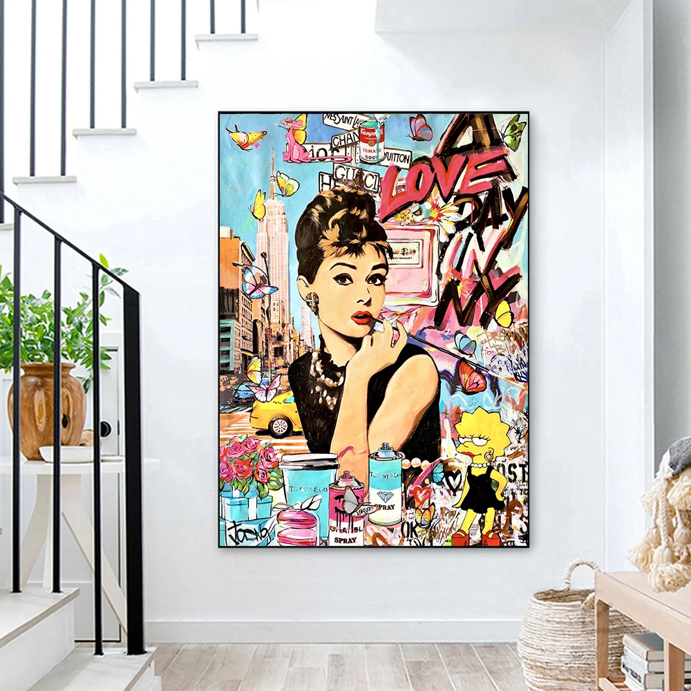 Граффити поп-арт Хэпберн Монро принты холст постер печать холст кар...