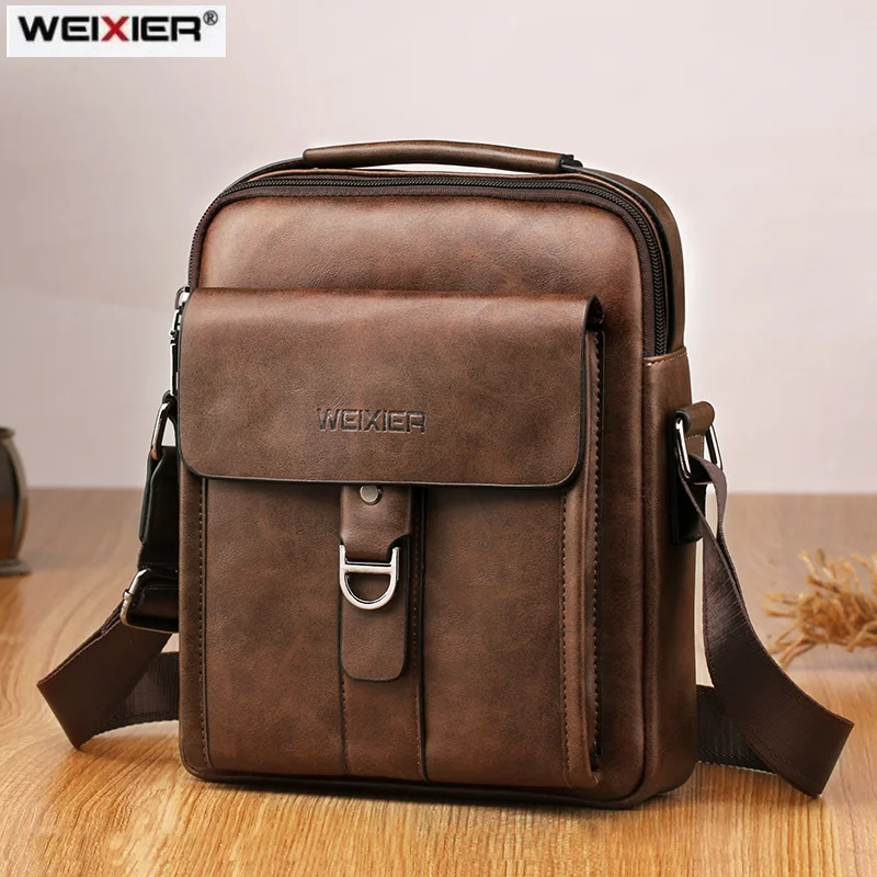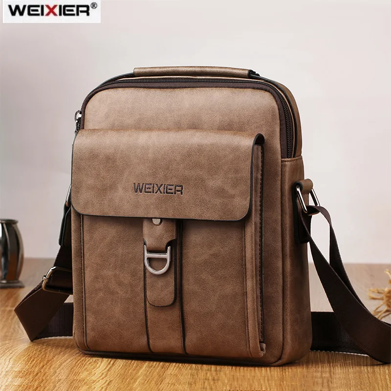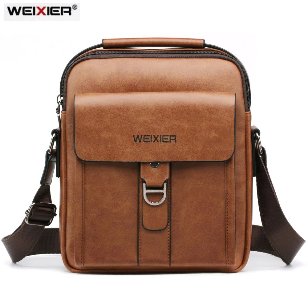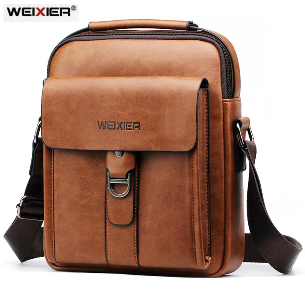 Роскошная брендовая винтажная сумка-мессенджер WEIXIER, мужские кожаные сумки через плечо, деловые повседневные коричневые сумки через плечо для мужчин, маленькие ранцы