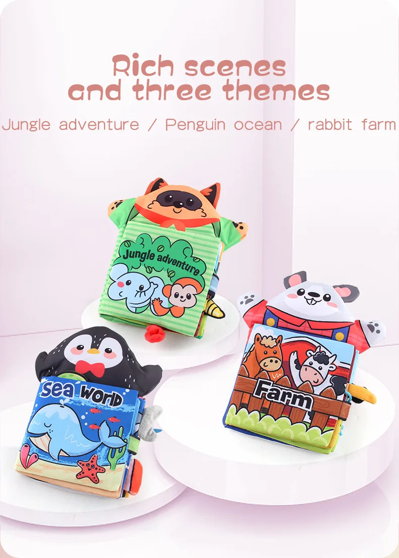 Мягкая тканевая 3d-книга Монтессори с хвостом животного для новорож...