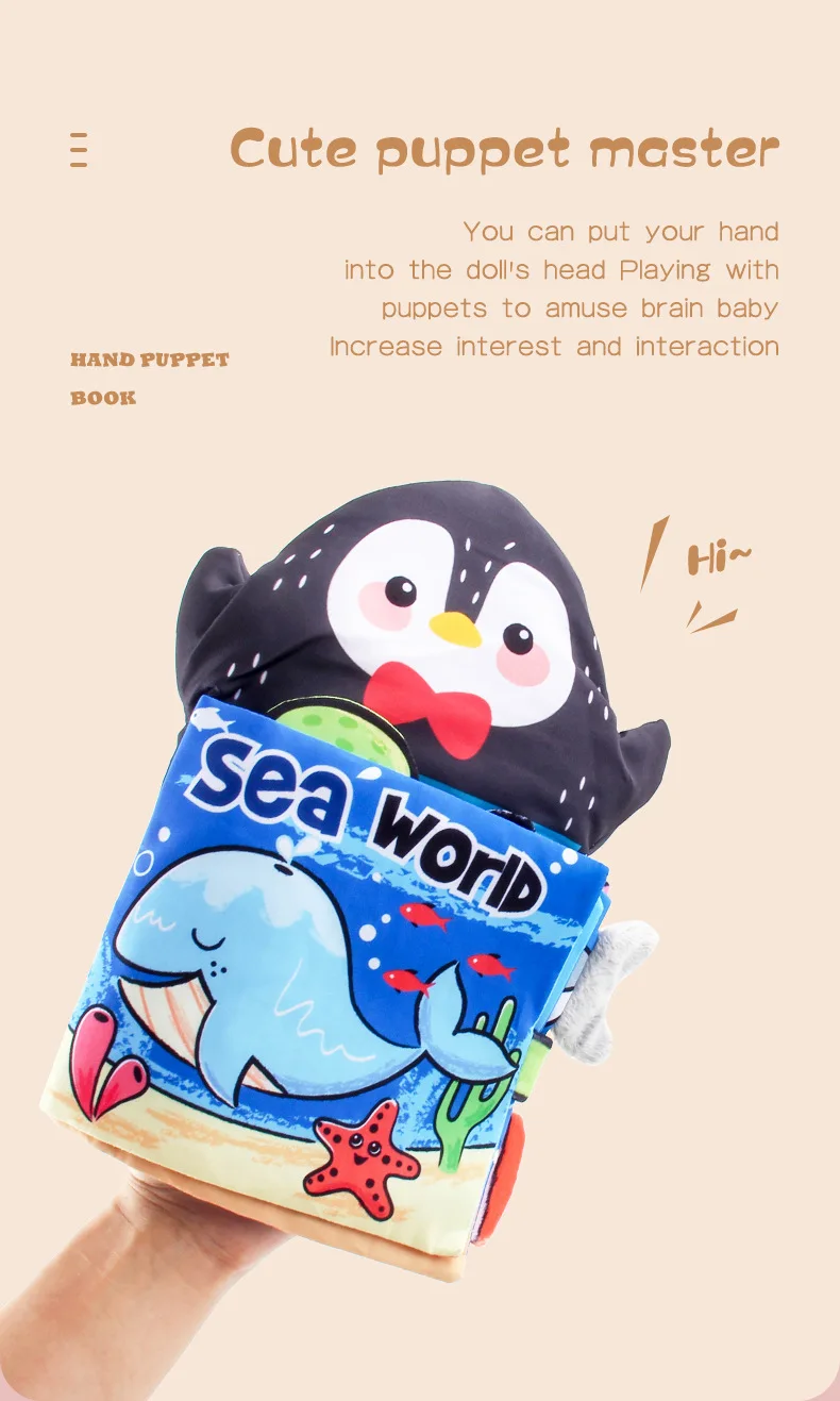 Тканевая книга-марионетка 2 в 1, детские игрушки 0, 4, 6, 12, 13, 2...