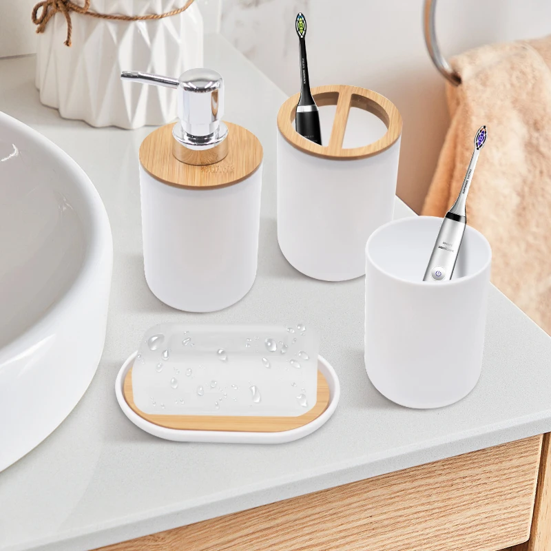 Набор аксессуаров для ванной комнаты, 6 шт., держатель для зубных щеток, диспенсер для мыла, ёршик для туалета, мусорный бак, Товары для ванной комнаты