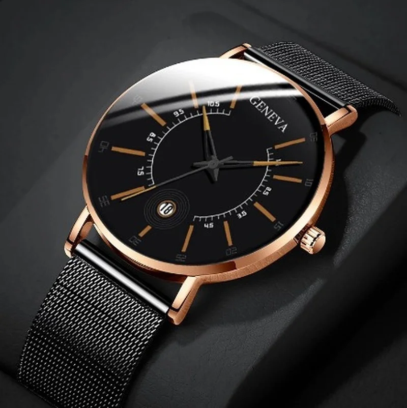Часы наручные кварцевые для мужчин и женщин, модные водонепроницаемые Роскошные с календарем и сетчатым браслетом из нержавеющей стали