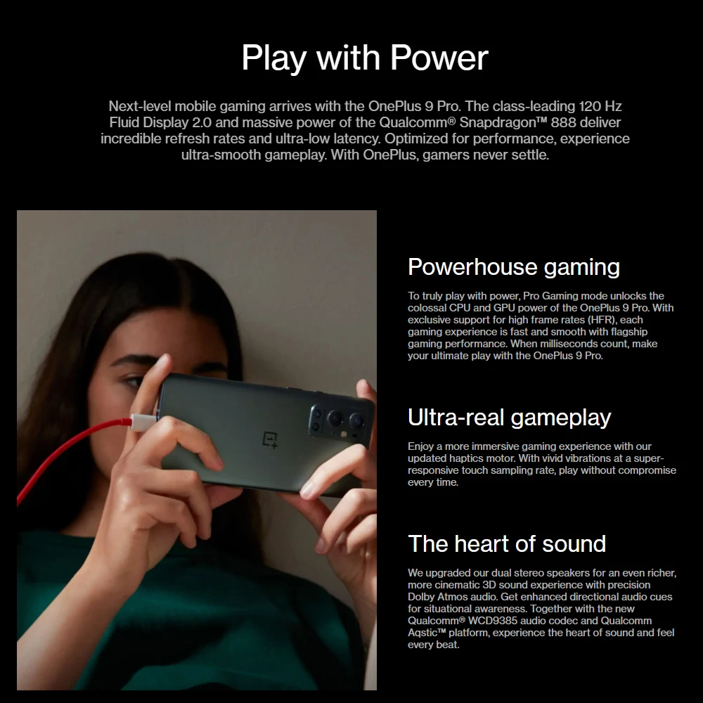 OnePlus 9 Pro интегрирует основные инновации дисплея для ведущего в отрасли визуального опыта. От новейшего LTPO дисплея до непревзойденной точности цвета, переосмыслите, что возможно. OnePlus 9 Pro настолько отзывчив, что вы не сможете его положить.