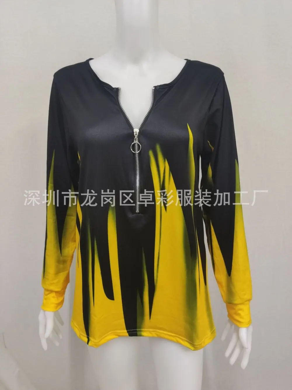 Галстук Краситель градиент печати футболка с коротким рукавом v-образным вырезом топ на молнии размера плюс футболки повседневные топы пуловер Одежда для женщин