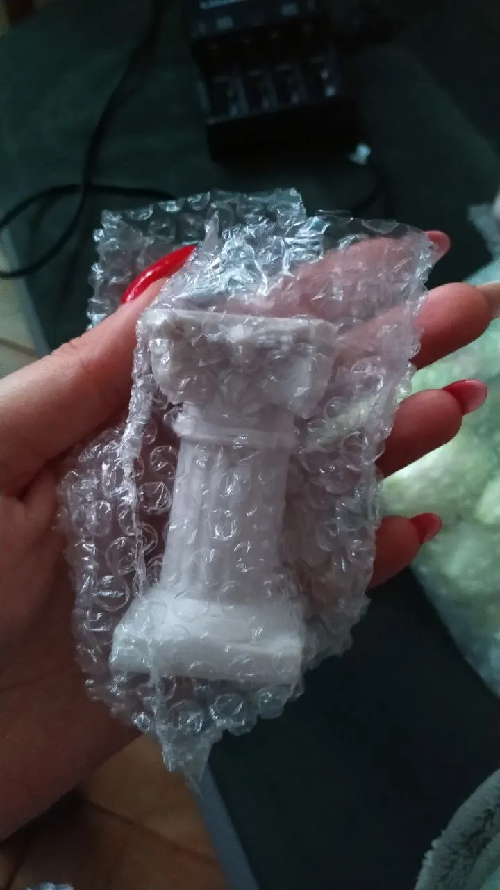 Фигурка из твердого материала, как будто из гипса. Но скорее всего это пластик или полимер. Брала пару фигурок в этом магазине. Для миниатюрных фотосессий со своими куколками. Все статуэтки пришли целые без дефектов. В срок. Я довольна!
