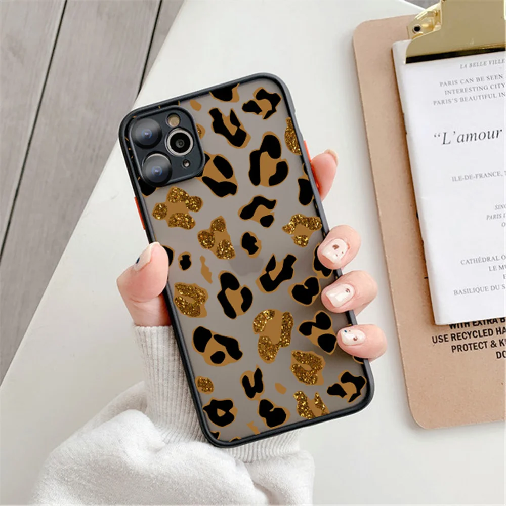 Модный чехол USLION с леопардовым рисунком для iPhone 12 11 Pro Max XS Max XR X 13 12 Mini 7 8 Plus, Матовый Бампер, противоударный прозрачный чехол