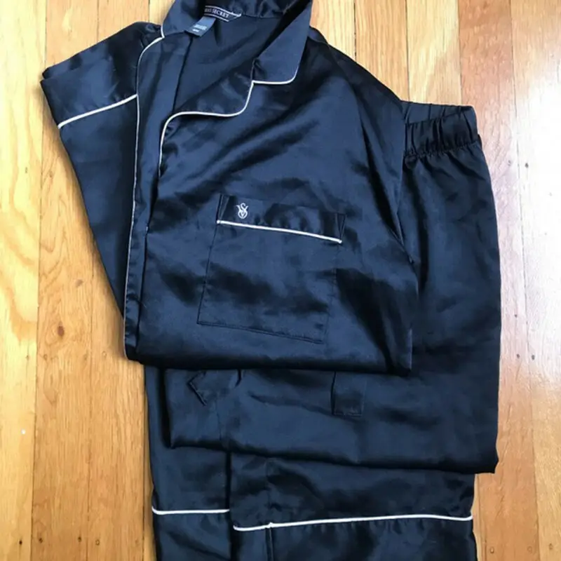 Осенний женский Шелковый Атласный пижамный комплект, Женский однотонный топ с длинным рукавом, рубашки и брюки, нижнее белье из 2 предметов, ночная рубашка, нижнее белье