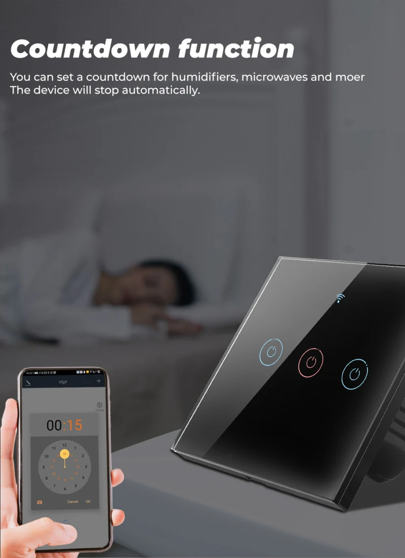 Стеклянный сенсорный экран этого Смарт-переключателя чувствителен к прикосновениям