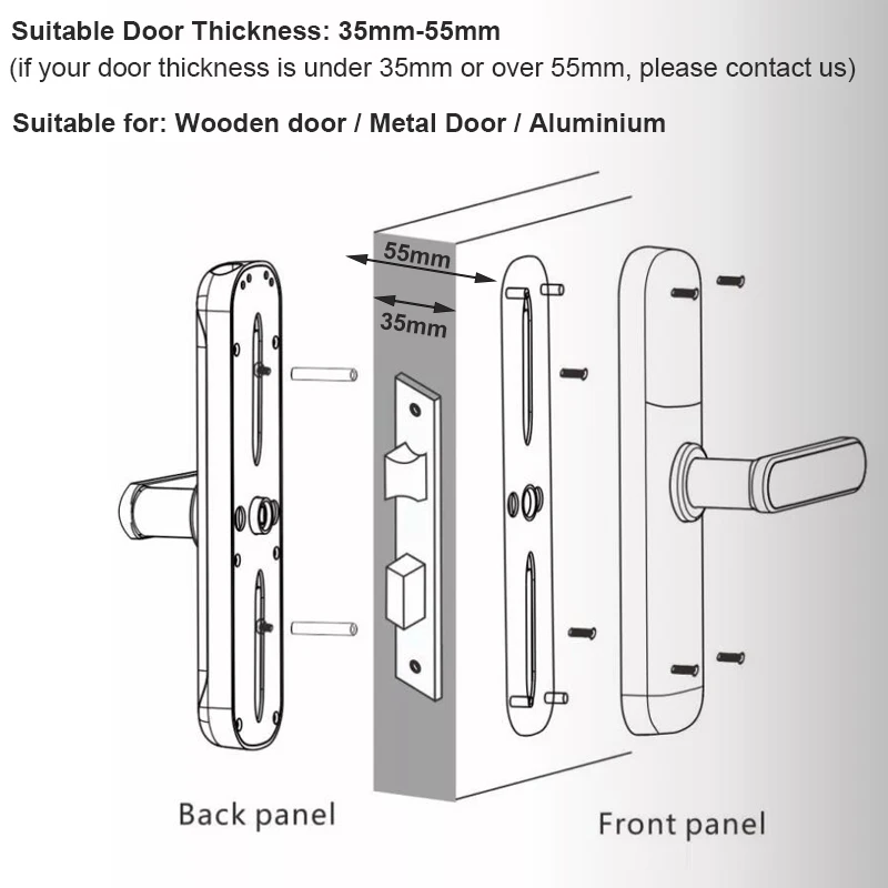 Этот замок подходит для двери толщиной 35-55 мм.