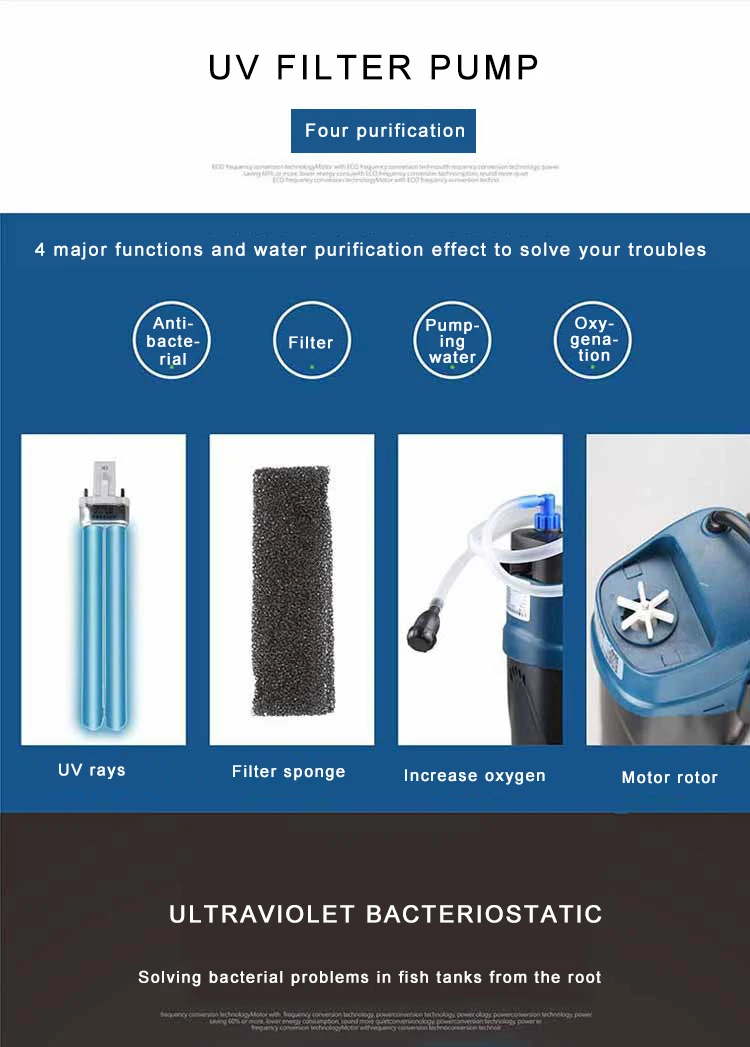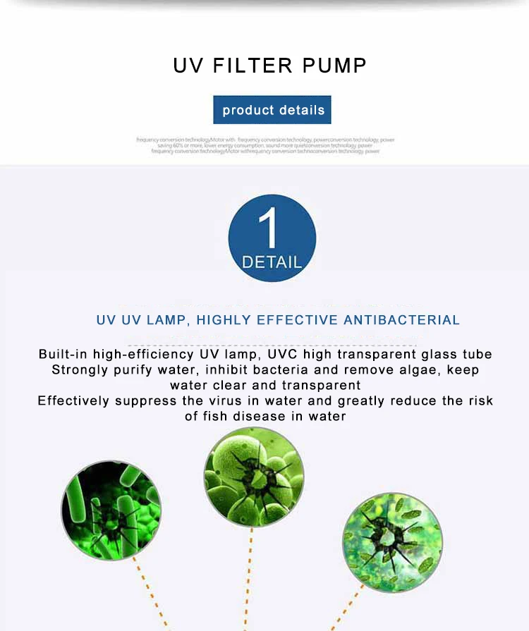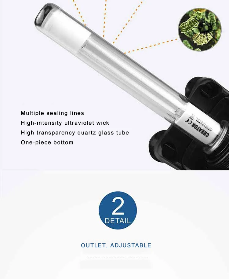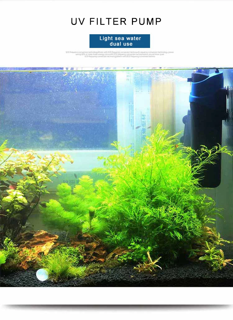 Встроенный насос направляет водоносные организмы мимо UV-C лампы для чистой, чистой аквариумной воды.