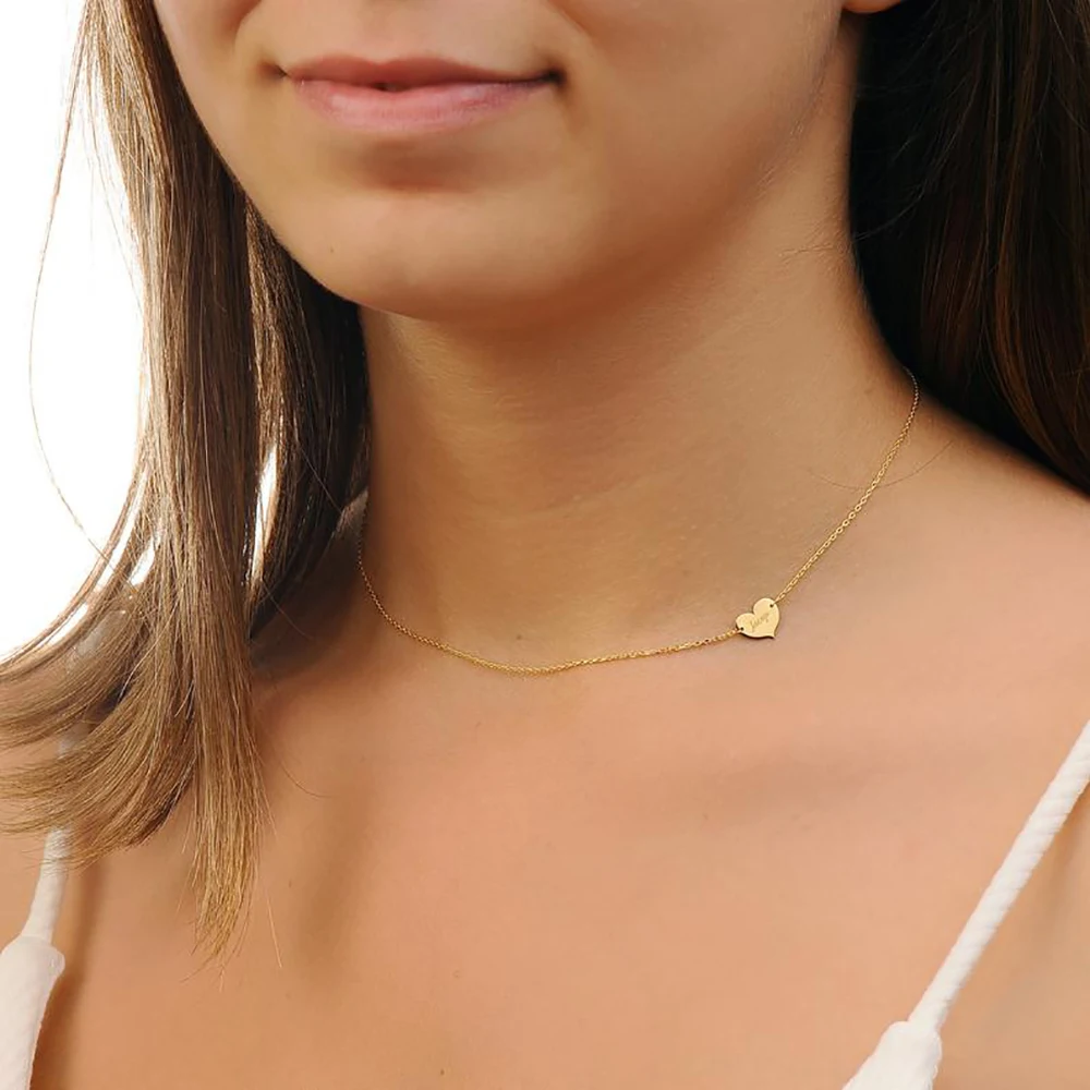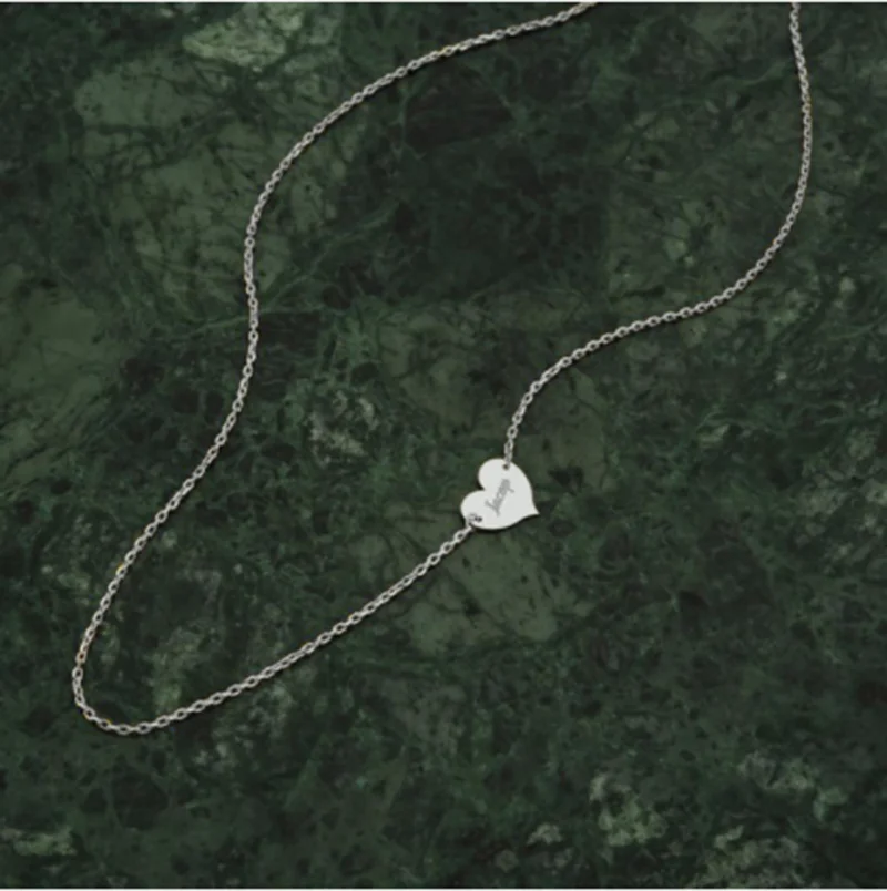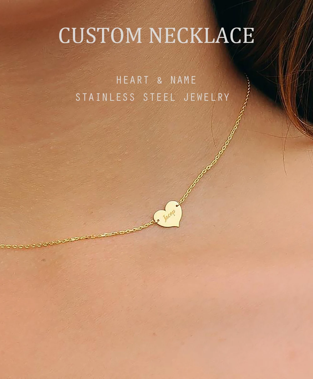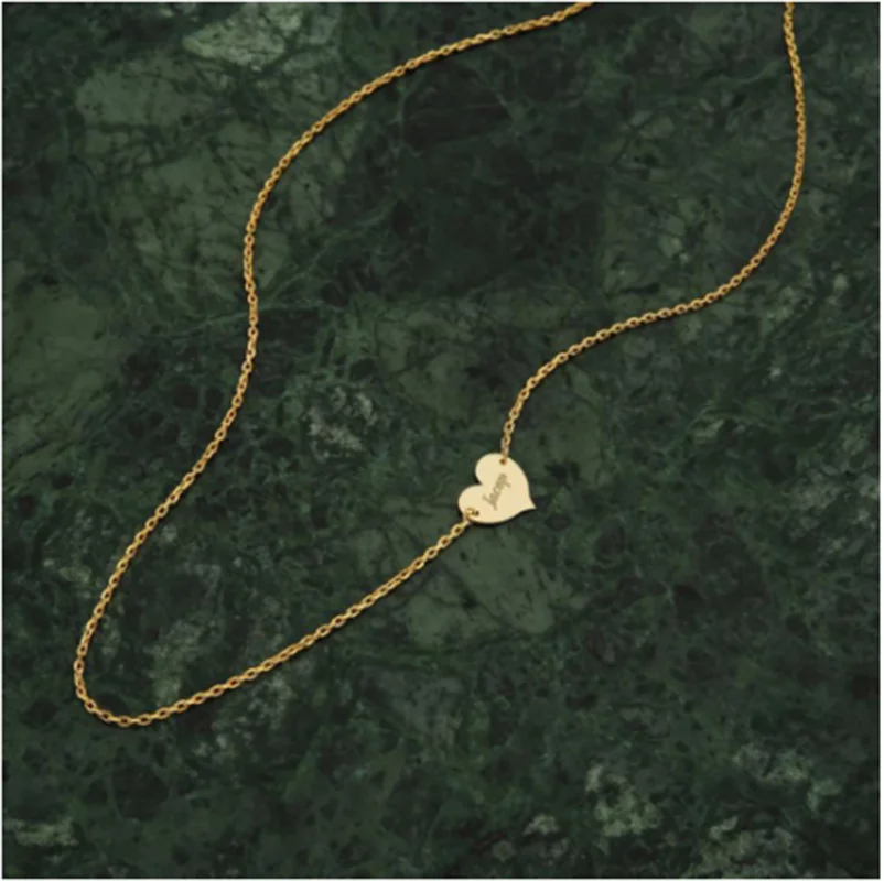 Шерман на заказ боковое изящное сердце индивидуальный кулон, ожерелье с гравировкой Имя Ювелирные изделия Для Женщины Девушки подарок из нержавеющей стали