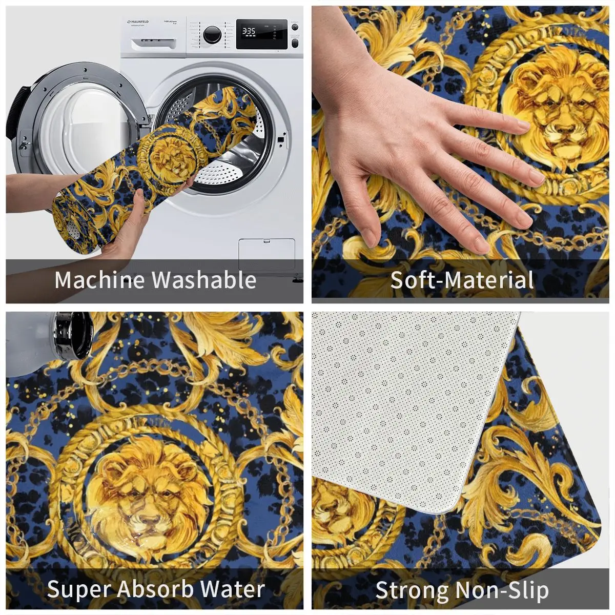 Коврик с золотым львом и Дамасским узором, коврик, коврик для ног, коврик для ванной, Противоскользящий коврик для туалета, балкона, Прочный моющийся коврик