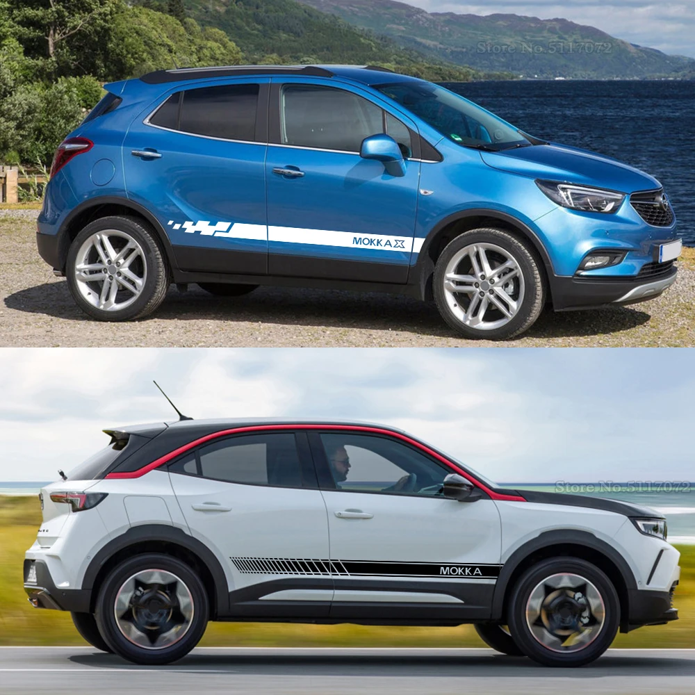 Наклейки на дверь автомобиля, боковую юбку для OPEL MOKKA X, гоночные полосы, спортивное украшение для тела, внешние виниловые наклейки сделай сам, аксессуары