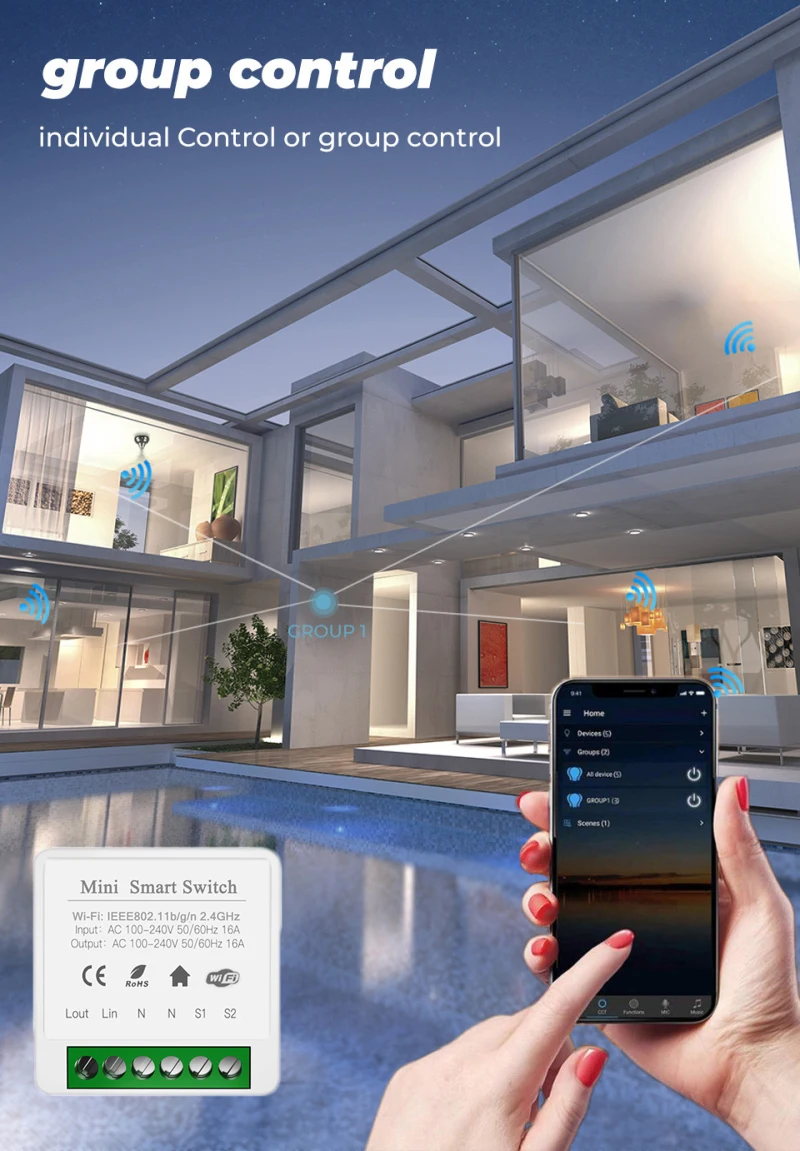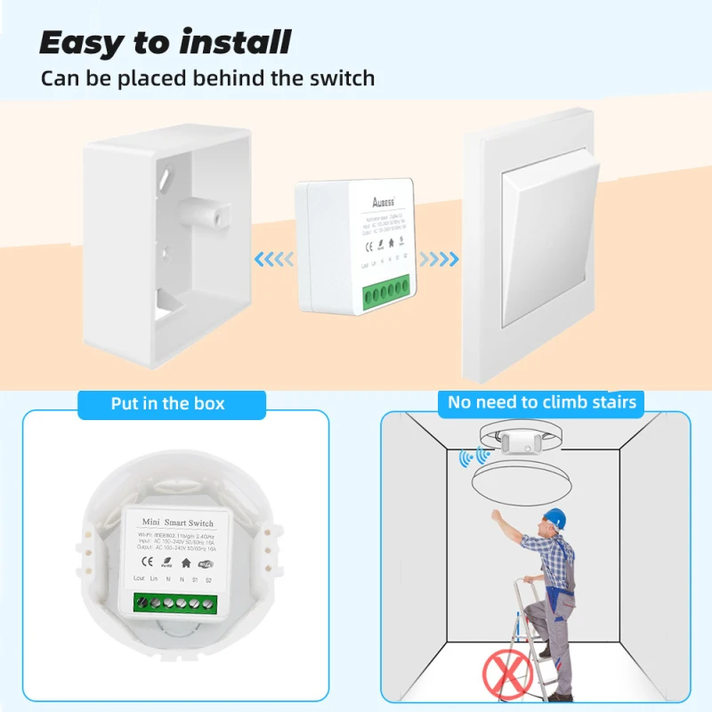 Его также можно подключить за переключателем для поддержки одного переключателя управления и двойного переключателя управления. Он может быть непосредственно установлен в коробке переключателя, чтобы скрыть модуль переключателя. Он также может быть установлен на двойном переключателе управления, не влияя на использование двойного переключателя управления.