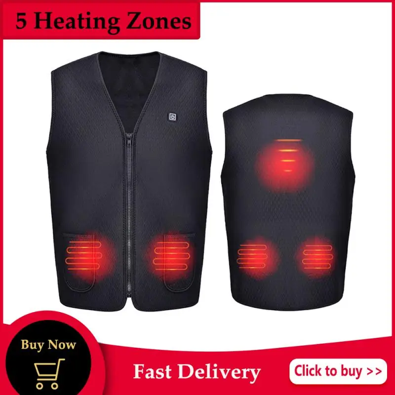Зимний жилет с подогревом через USB, жилет с регулируемой температурой, моющаяся куртка без рукавов для отдыха на открытом воздухе, спорта, кемпинга