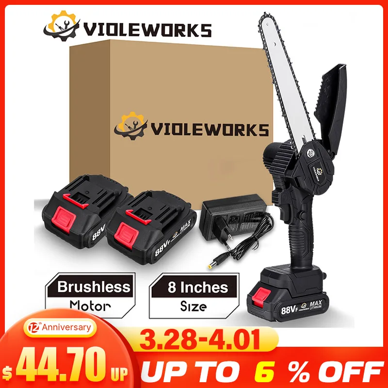Бесщеточный 8 дюймов электрическая пила бензопила для батареи Makita 18vПримечание: тело также подходит для Makita 18V Батарея!Спецификация:Бренд: VIOLEWORKSМотор: бесщеточныйДлина направляющей пластины: 8 дюймовСкорость цепи: 5 м/сАккумулятор: 10000 мАчНапряжение: 88VFМощность: 3000 ВтЦепь: быстрая регулировкаМатериал: металлическая стальная цепьОпциональный узор: Без аккумулятора/1 комплект батарей/2 комплекта батарейОсобенности:-Острая и прочная цепь: Высококачественная цепочка из сплава, износостойкая и прочная, быстрая и гладкая распиловка без помех.-Широкое применение: Эта электрическая бензопила имеет широкий спектр применения, используется для резки леса, резки дерева, обрезки веток и так далее.-Бесщеточный Медный двигатель: сильная мощность, более стабильная выходная мощность, чем цепная пила, Модифицированная угловым шлифовальным станком. Высокая нагрузка, так что не может легко сгореть.-Портативный дизайн: мягкая резиновая ручка, противоскользящая и поглощающая пот; Расширенная конструкция перегородки, чтобы предотвратить брызги щепы во время резки; Конструкция отверстия для рассеивания тепла, эффективная вентиляция и рассеивание тепла.Посылка включает в себя:Рисунок 1:1 электрическая Беспроводная цепная пила1 отвертка1 х гаечный ключ1 x Руководство пользователяРисунок 2:1 электрическая Беспроводная цепная пилаАккумулятор-1 шт.Зарядное устройство-1 шт.1 отвертка1 х гаечный ключ1 x Руководство пользователяРисунок 3:1 электрическая Беспроводная цепная пила2 батареиЗарядное устройство-1 шт.1 отвертка1 х гаечный ключ1 x Руководство пользователяПримечания:1. Ручное измерение, пожалуйста, учитывайте погрешность в 1-3 см, спасибо.2. Пожалуйста, оставьте нам сообщение о вашем предпочтительном рисунке, иначе мы отправим товар случайным образом.3. Из-за разницы между различными мониторами изображение может не отражать фактический цвет изделия. Мы гарантируем, что стиль такой же, как показано на фотографиях. Пожалуйста, поймите, спасибо!